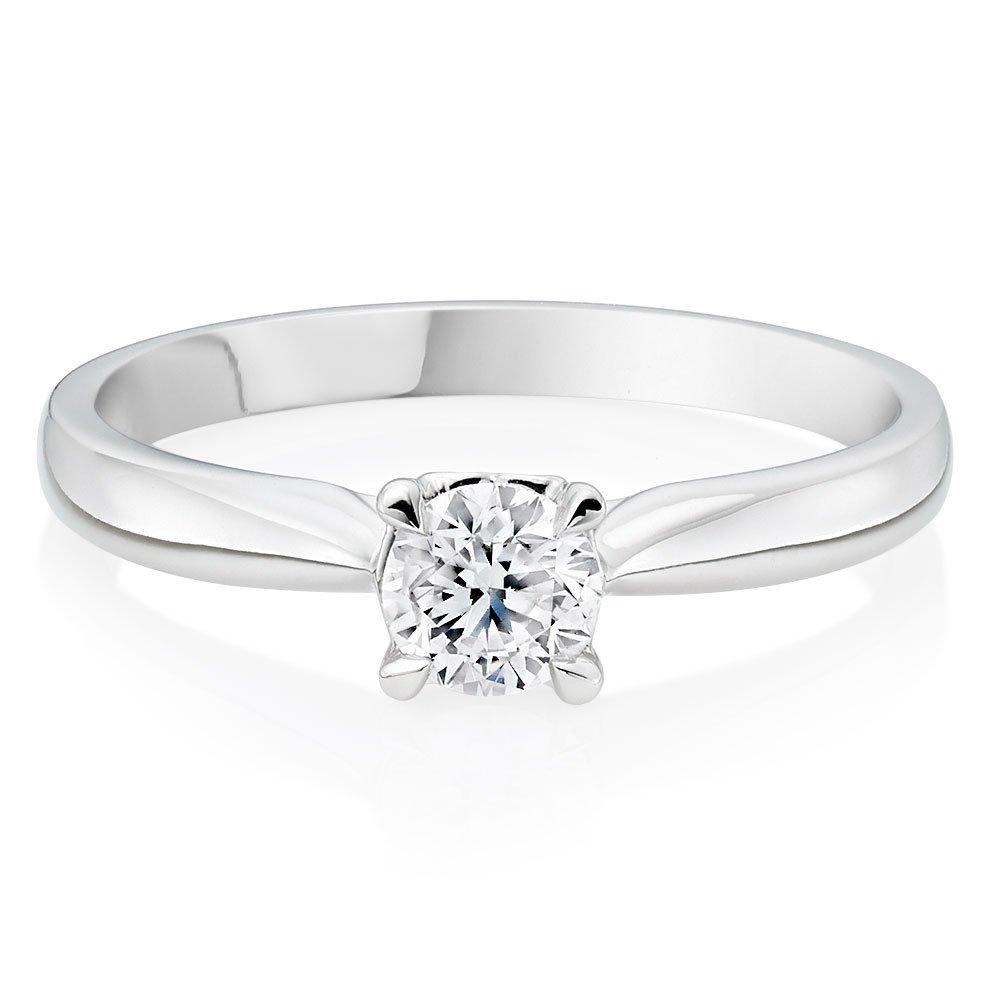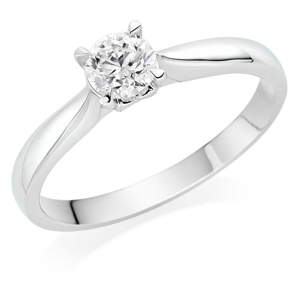 Simply beautiful, this 18ct White Gold Diamond Solitaire Ring defines timeless romance, and makes the perfect ring for a romantic proposal. At A Glance Round brilliant diamond in the centre Polished 18ct white gold band Modern four claw setting Diamond cut - round brilliant Diamond colour - G Diamond clarity - Si1 Diamond carat weight - 0.30ct Please note there could be a 5% variance on the diamond carat weight, as every diamond is unique