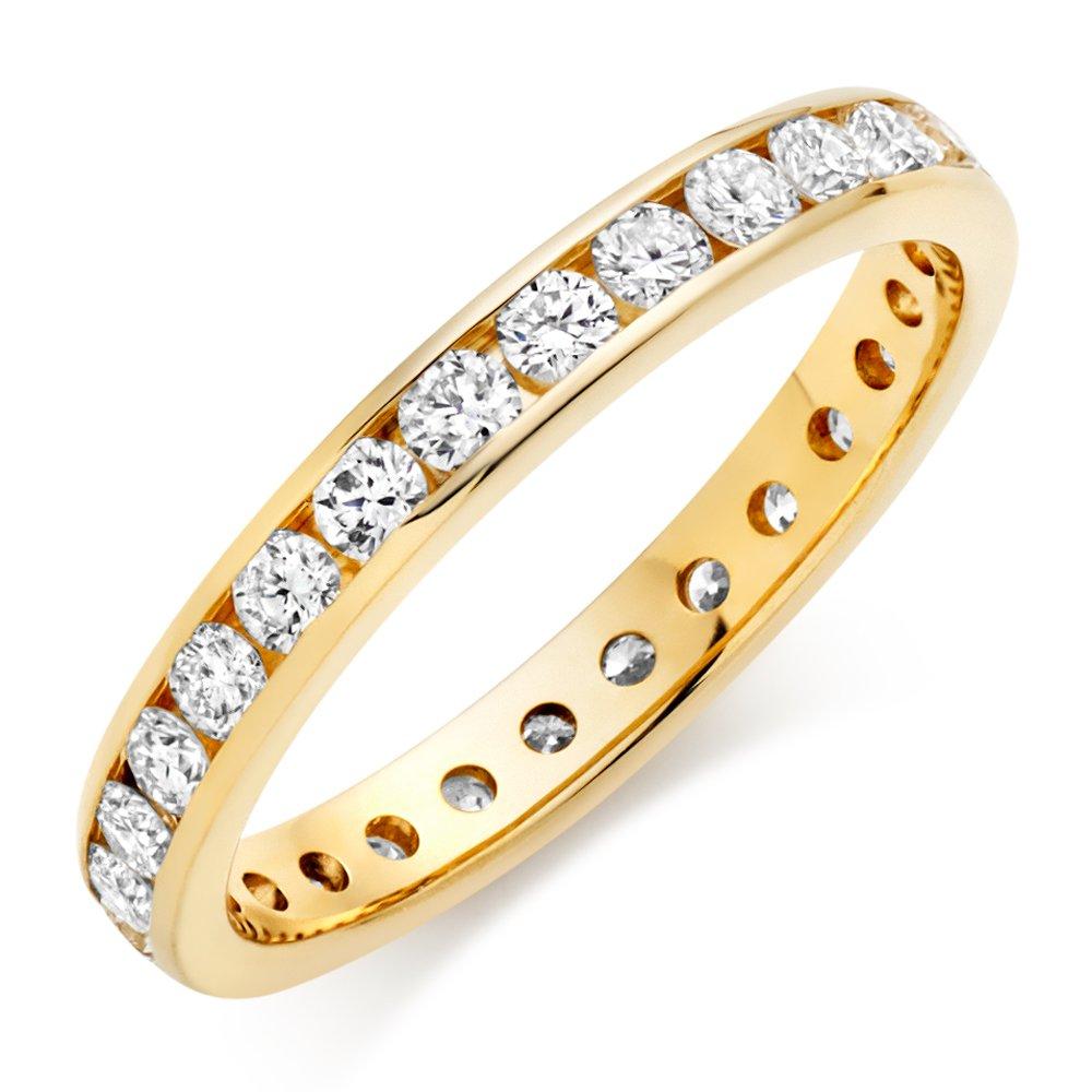 Eternally beautiful, this 18ct Gold Diamond Eternity Ring is the perfect way to spoil a loved one and is designed to create a lifetime of lasting memories. At A Glance Designed in 18ct gold Round brilliant diamonds in a channel setting Eternity style Diamond cut - round brilliant Diamond colour - G Diamond clarity - SI1 Total diamond carat weight - 1ct Please note there could be a 5% variance on the diamond carat weight, as every diamond is unique
