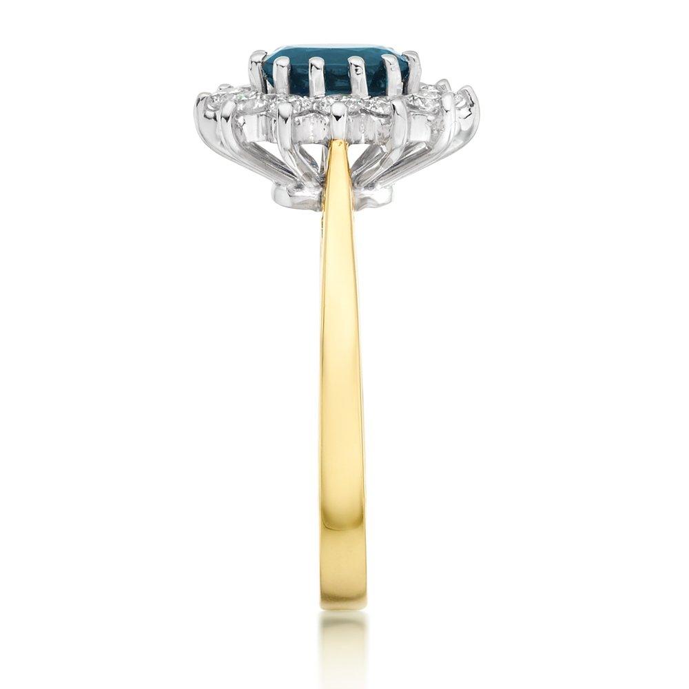 The epitome of glamour and romance, this vintage-inspired 18ct Gold Diamond Sapphire Cluster Ring will take your breath away. At A Glance Crafted in 18ct gold Beautiful sapphire centre stone Surrounding round brilliant diamonds Diamond cut - round brilliant Diamond colour - G Diamond clarity - VS2 Diamond carat weight - 0.46ct Please note there could be a 5% variance on the diamond carat weight, as every diamond is unique Our sapphire gemstones may naturally vary in blue colour, from light to dark blue. The colour may also vary slightly to the image because every gemstone is unique