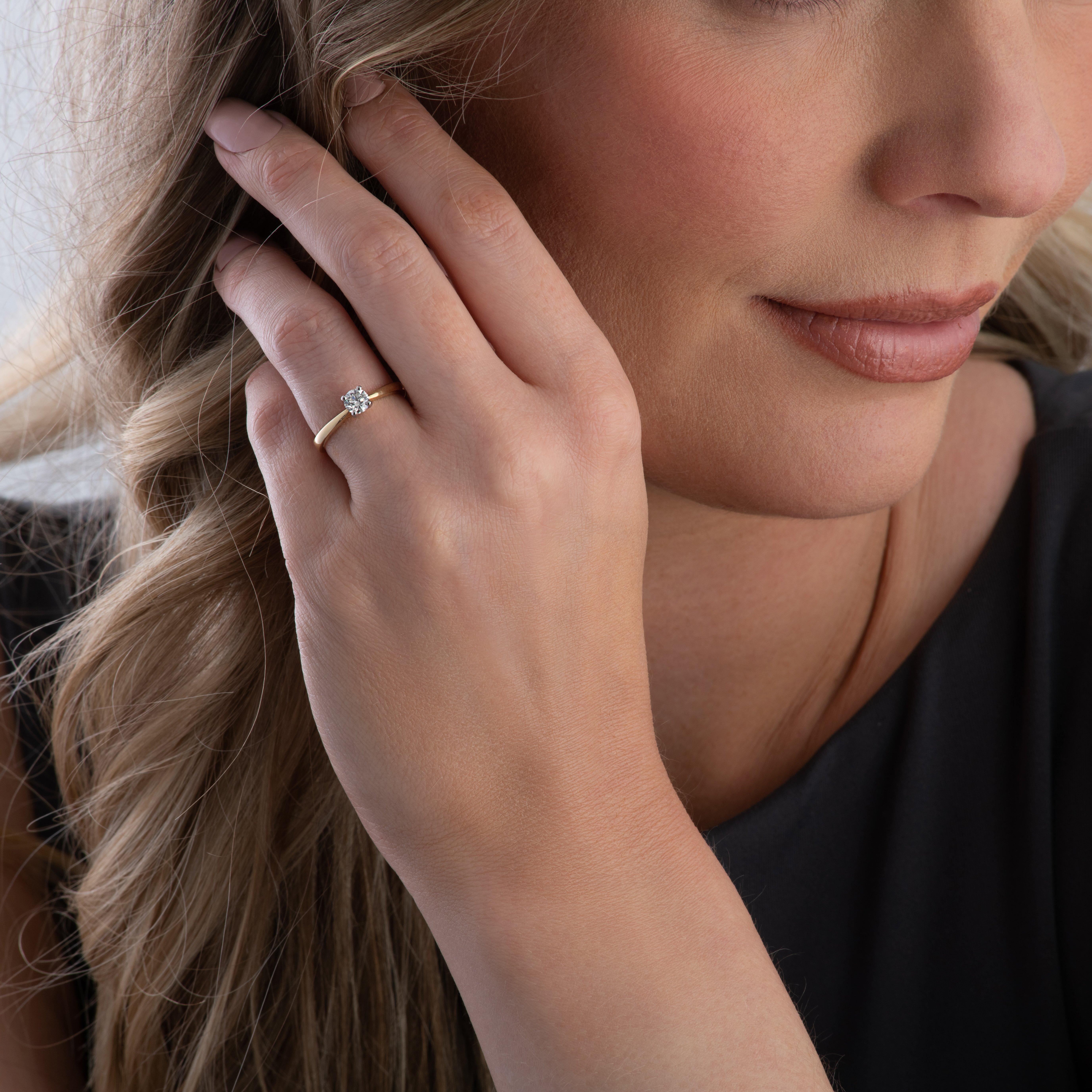 Crafted with a fire and brilliance that will capture their heart forever, this 18ct Yellow Gold Diamond Solitaire Engagement Ring makes the light dance elegantly and will always ensure your love story is encapsulated in symbol of beauty. At A Glance Crafted in 18ct yellow gold Featuring diamond Diamond carat weight - 0.40 Diamond colour - G Diamond clarity - SI1 Diamond shape - round brilliant Please note there may be a 5% variance on the carat weight, as every diamond is unique