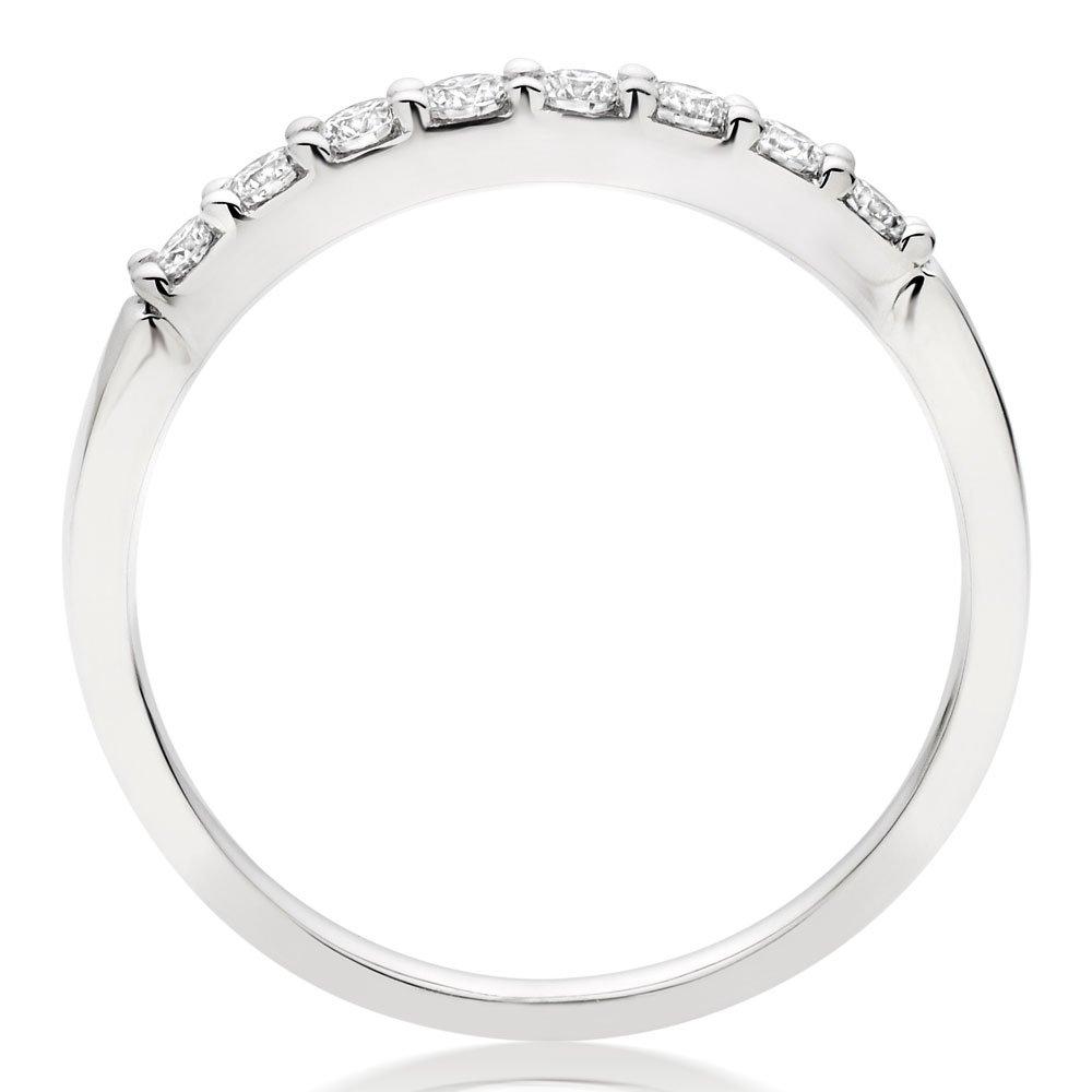 Filled with meaning and sparkle, this 9ct white gold diamond half eternity ring is designed to provide you with a lifetime of lasting memories of your special day. Beautifully crafted in 9ct white gold, a dazzling row of round brilliant diamonds are elegantly embedded in the glistening band. Simple yet breathtaking, this half eternity ring is the perfect way to symbolise your true love and romance. Diamond information: Cut - round brilliant, Colour - H, Clarity - SI2, Carat weight - 0.25ct. Shop the men's 9ct white gold diamond wedding ring, featured in the model image.Please note there could be a 5% variance on the diamond carat we...