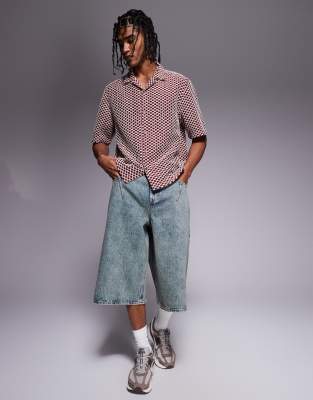 ASOS DESIGN longer length denim jort in acid wash with pleat detail-Green