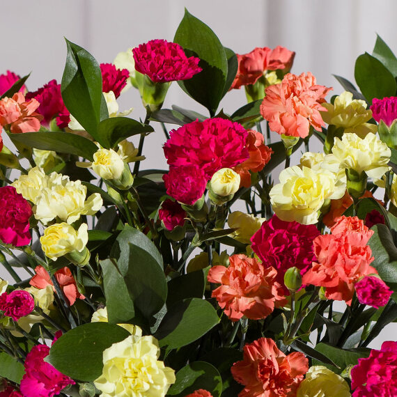 A vibrant mix of Spray Carnations in warm autumn spice colours, including golden yellow, orange and deep pink. Perfect for adding a touch of seasonal charm to any home or as a heartfelt gift during the autumn months. We send our Carnations in bud to ensure maximum vase life and guarantee our Carnations will last for at least two weeks.