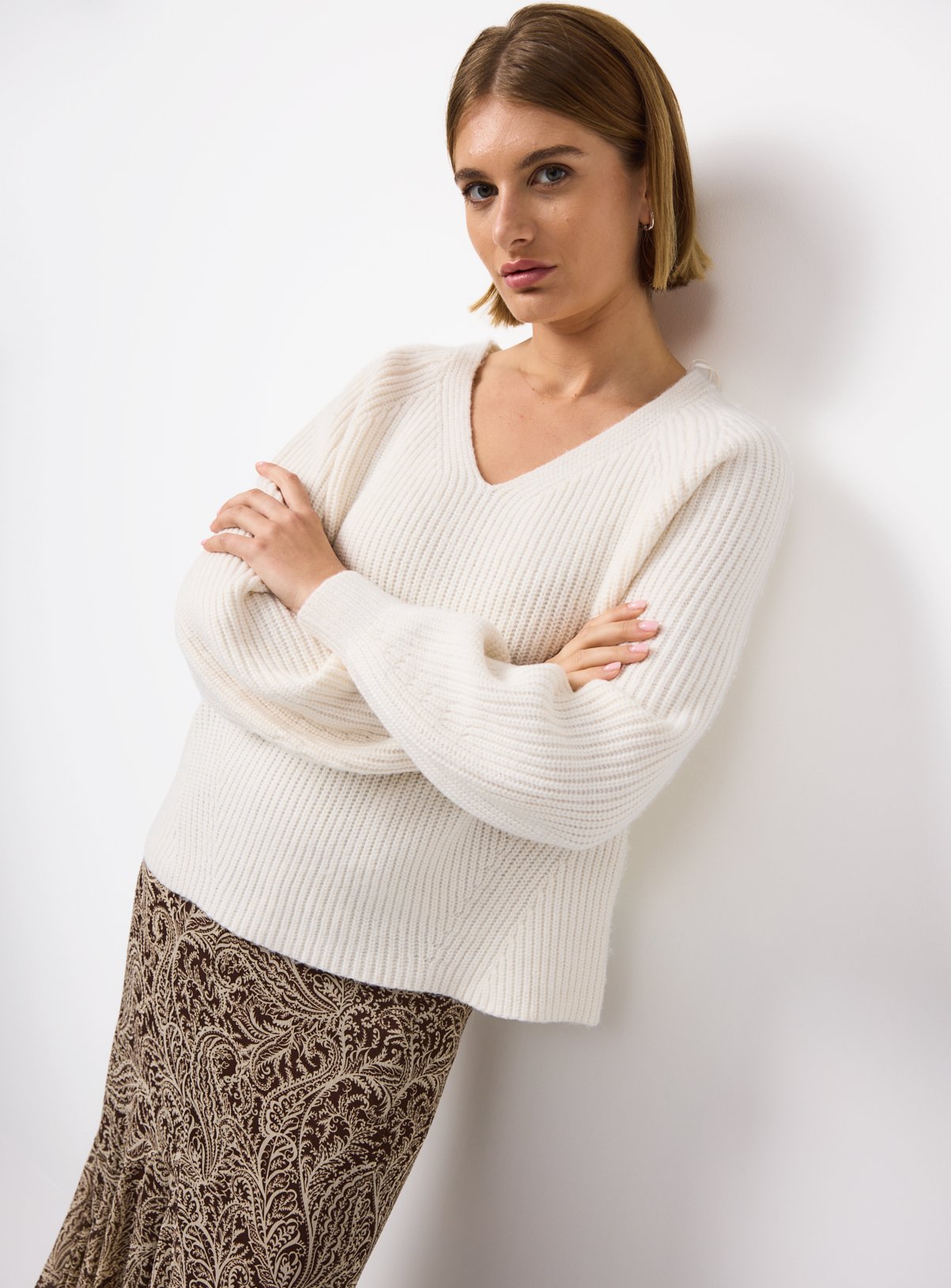 Update your knitwear edit this winter with our neutral cream jumper. Designed with a flattering v-neckline, a ribbed knit construction and finished with ribbed trims Cream Long sleeve V-neckline Knitted fabric Model wears size 10 and is 5'10"