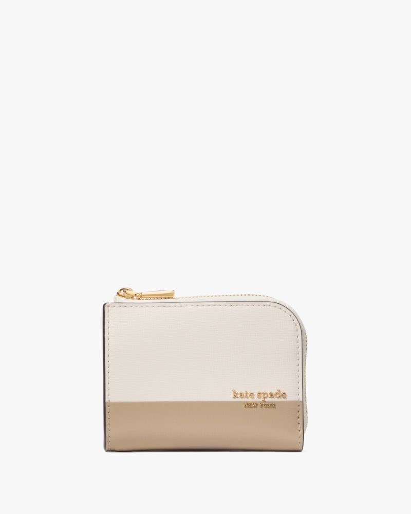 Reach for our must-have Devin card case on repeat. It's made from scratch-resistant Saffiano leather, so it'll last for years to come. Kate Spade Women's Devin Colorblocked Zip Card Case in Timeless Taupe/Grey Grainy Leather