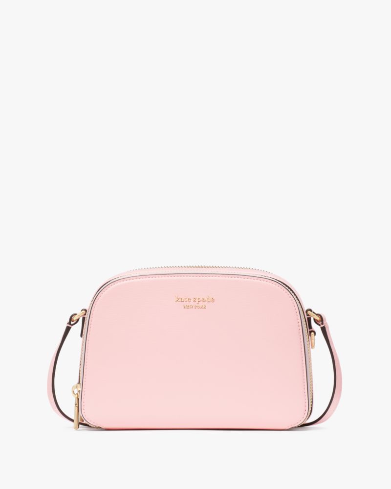 Reach for our chic Devin dome crossbody on repeat. This essential is made from scratch-resistant Saffiano leather, so it'll last for years to come. PS: if you loved our Morgan styles, you're sure to love the Devin, too! Kate Spade Women's Devin Double Zip Dome Crossbody Wallet in Pastry Pink Leather