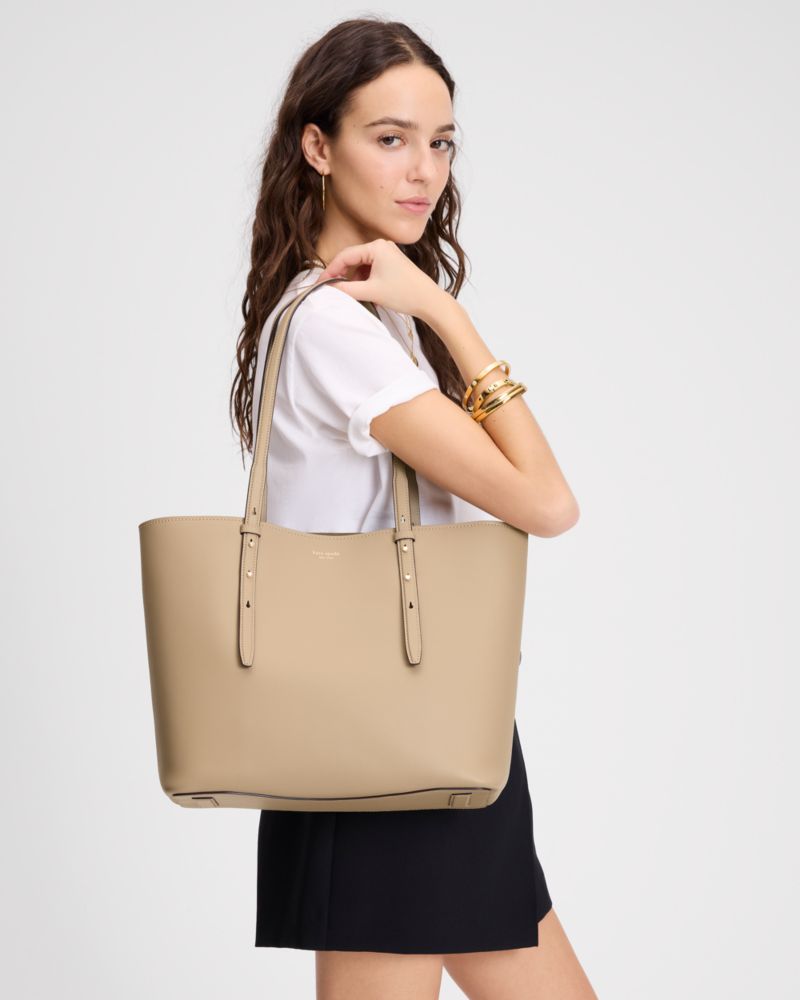 It's in the name-no matter what your day brings, our tote holds up. Made from durable fine grain leather, this carryall fits all your necessities (including a 15-inch laptop) and includes multiple storage pockets. Kate Spade Women's Do It All Large Tote Bag in Timeless Taupe/Grey Smooth Leather
