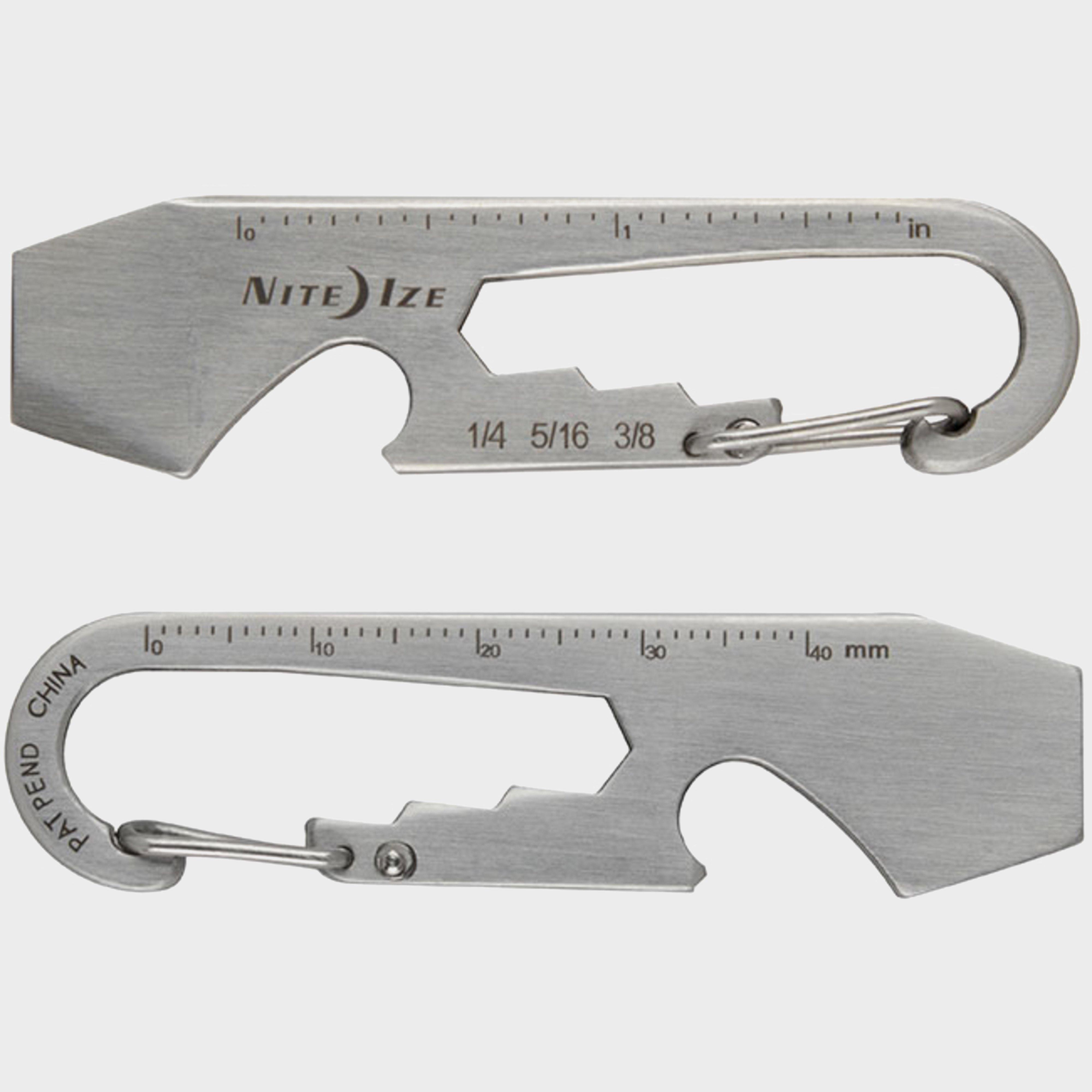 0.4oz | 64.8mm x 17.2mm x 2.5mmWeight: 12g | The Nite Ize DoohicKey Keytool features half-dozen tools that do everything from tighten bolts and screws to opening bottles, all in a simple key tool that fits in the palm of your hand. __ On one end of the DoohicKey is a sturdy carabiner clip, allowing you to attach keys to it, or attach the DoohicKey itself to any loop or ring. __ It functions as a box cutter, a bottle opener, a wrench (1/4", 5/16", and 3/8"), a ruler (inches and centimeters), and a flat-head Screw Driver.__Secure Stainless Steel constructionAvailable in Black or StainlessTSA FriendlySize: 2.6" x 0.7" x 0.1"