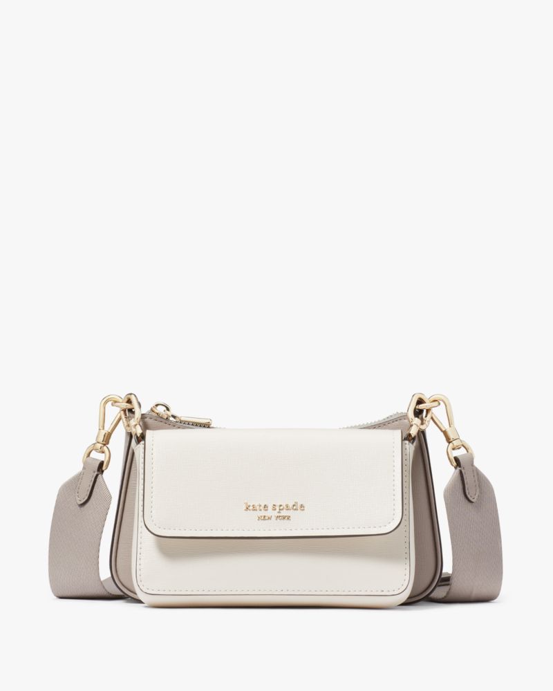 Proof that two is better than one. Our Double Up crossbody includes an optional Saffiano leather pouch that you can wear with the bag (or use on its own). Kate Spade Women's Double Up Colorblocked Crossbody Wallet Grainy Leather