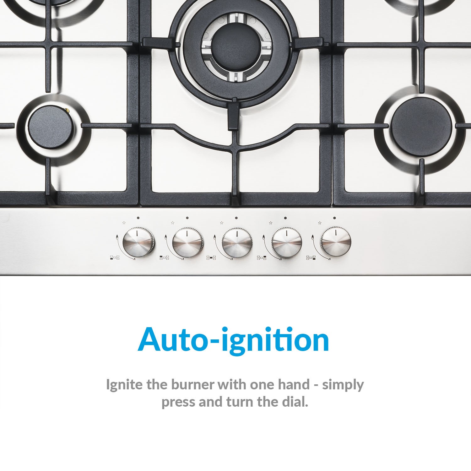 electriQ 75cm 5 Burner Gas Hob – Stainless Steel