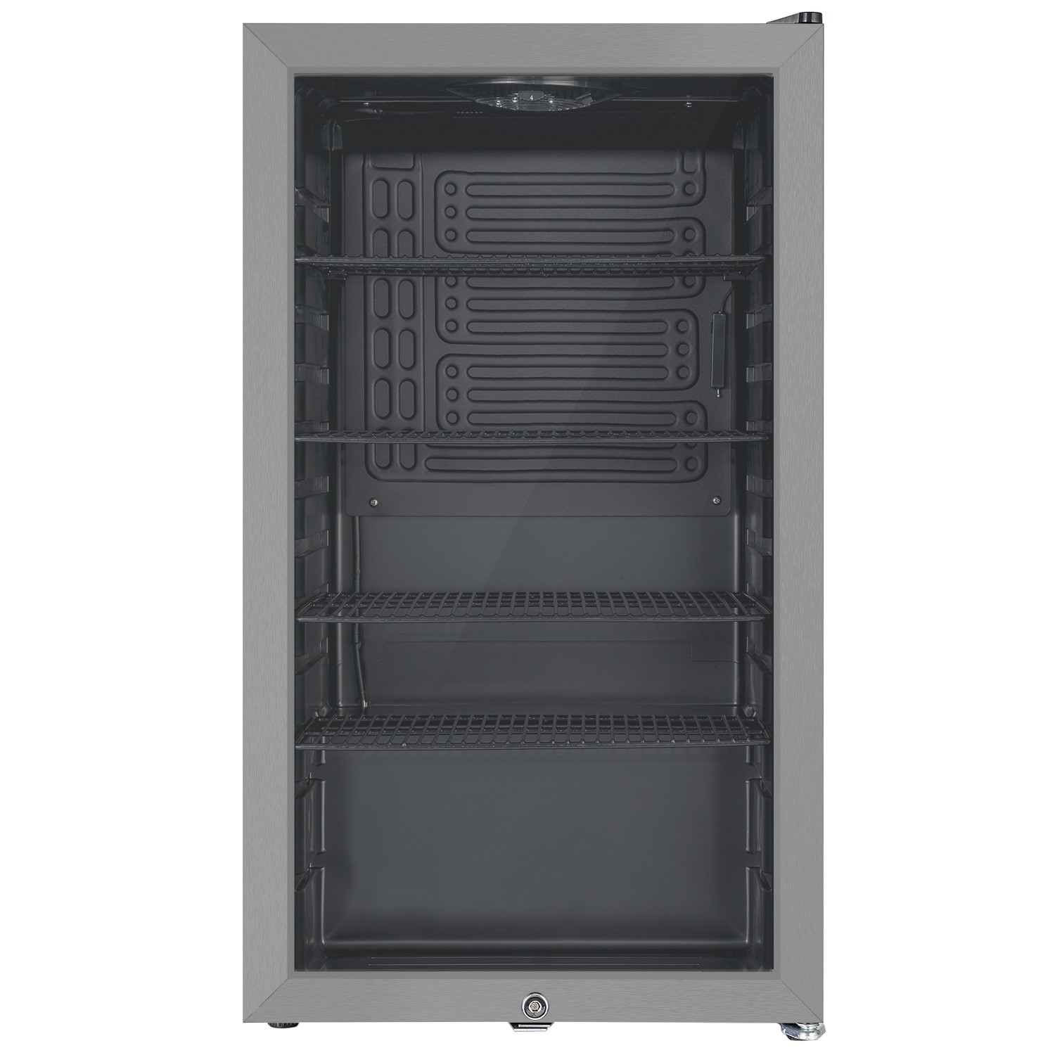 Stand out features LED LightLED lights are much more energy-efficient than standard lights . lasting significantly longer while reducing your energy bill. Adjustable ShelvesAdjustable shelves offer flexible storage options . allowing you to rearrange the interior to fit different-sized items Lockable DoorKeep your drinks safely stored with a lockable door – . ideal for shared spaces offices or keeping treats away from little hands. What stands out . Store 128 standard 330ml cans in the 98L of spaceIdeal for the home bar office student flat or garageSleek stainless steel finish and glass door offers a modern lookFour shelves make o...