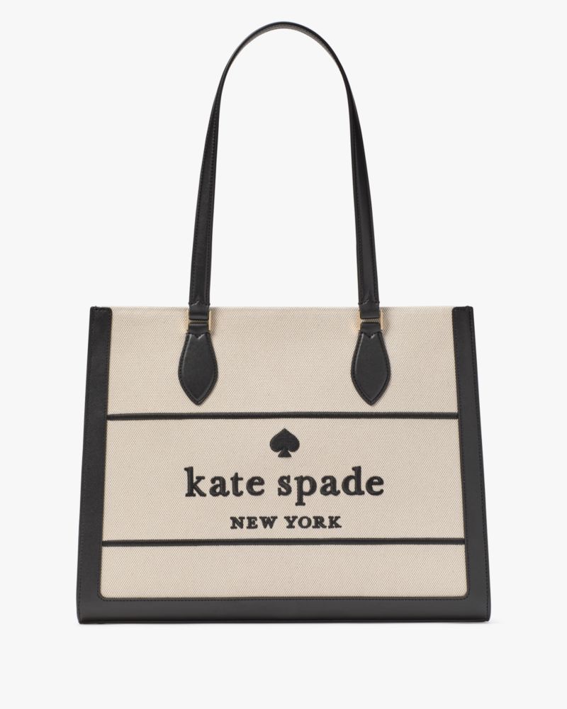 You know this tote holds your everyday stuff like a wallet, keys, phone, sunglasses. It also holds: two red lipsticks, $6 in change, 11 crumpled receipts, an avocado... Kate Spade Women's Ellie Canvas Large Tote Bag in Black Fabric