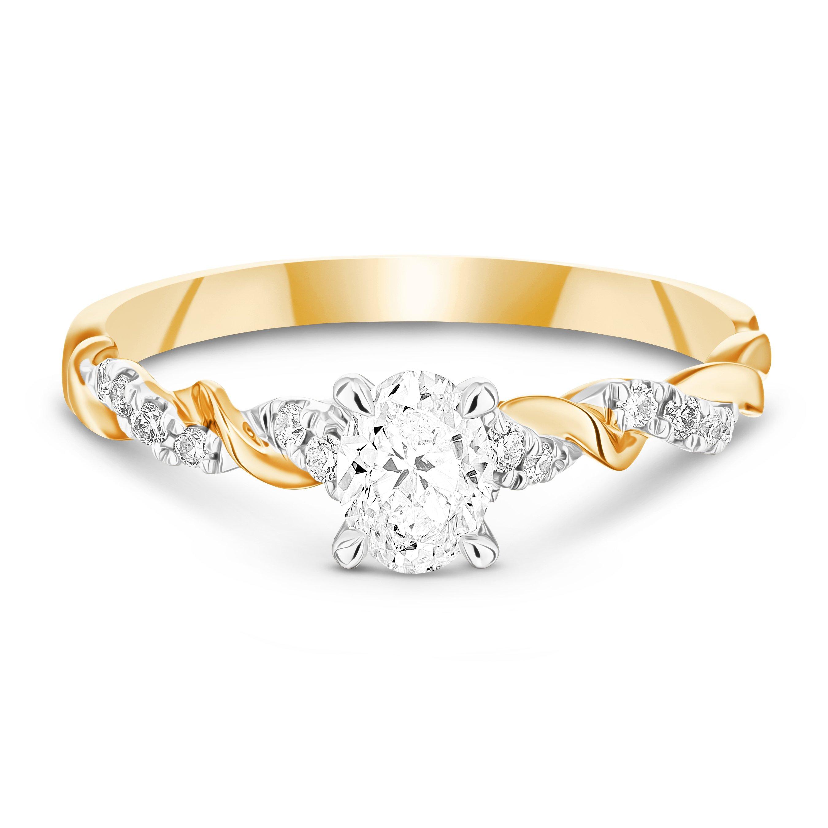 Swirling with elegance, this Entwine 18ct Yellow Gold Diamond Oval Shaped Engagement Ring is designed to be part of your love story forever. At A Glance Crafted in 18ct yellow gold Total diamond carat weight - 0.55 Diamond centre stone carat weight - 0.40 Diamond cut - oval, round brilliant Diamond clarity - SI1 Diamond colour - G Please note there may be a 5% variance on the diamond carat weight, as every diamond is unique