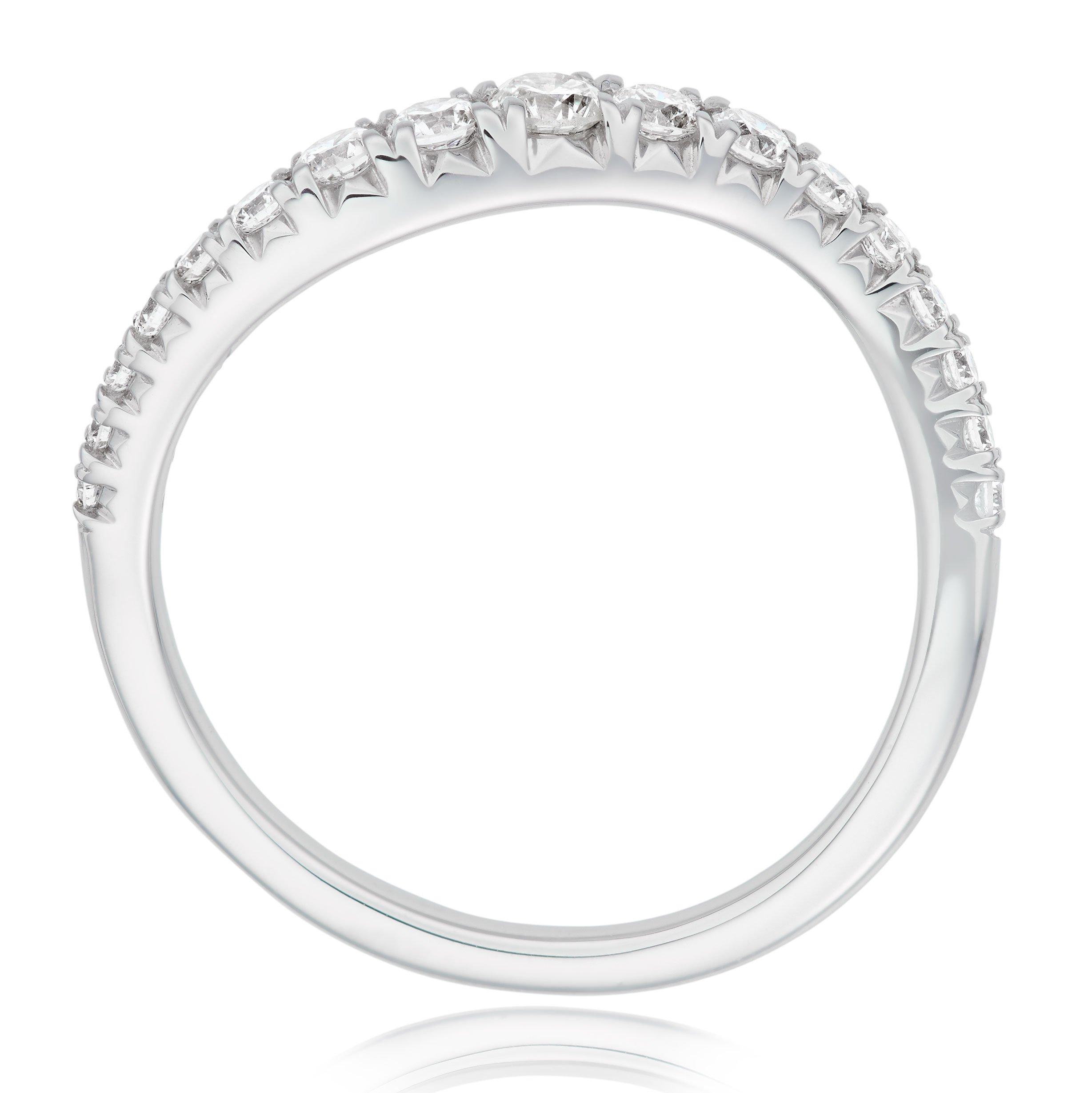 Life is never straight forward and this Essence 9ct White Gold Diamond Ring perfectly encapsulates the hope we carry with us along the way. It's wave design represents the twists and turns we face upon the journey of life, and the stunning diamonds that radiate a breath-taking sparkle, show that in the darkest of times there is always hope. At A Glance Crafted in 9ct white gold Featuring diamonds Diamond carat weight - 0.40 Diamond clarity - I1 Diamond colour - I