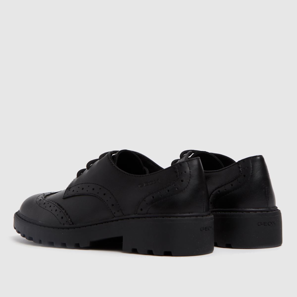 Keep it smart and trendy this term with the kids' Geox Casey Brogue! This school shoe boasts a black leather upper with classic stitched panels and chunky rubber sole unit for maximum durability and style.