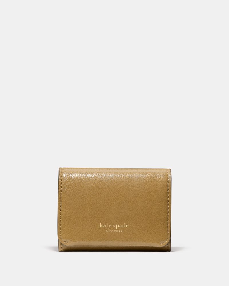 Our Halo collection is named for its unique ring-shaped hardware-an archival detail that dates back to Kate and Andy Spade's early days in business. This sleek trifold wallet in glossy glazed leather is a perfect complement. Kate Spade Women's Halo Glazed Card Case Trifold Wallet in Dried Thyme/Green Leather Animations