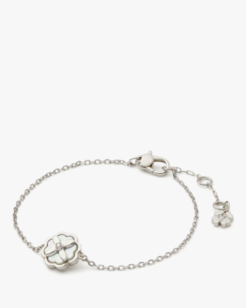 We reimagined our signature spades as an elegant floral motif. Here, we used it on this pretty bracelet with mother-of-pearl accents. Kate Spade Women's Heritage Bloom Bracelet in Cream/Silver./Grey
