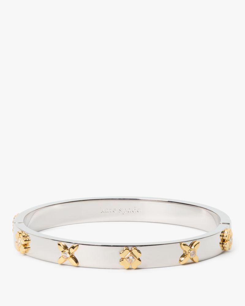 We reimagined our signature spades as an elegant floral motif. Here, we used it to adorn this hinged bangle with mixed metal accents. Kate Spade Women's Heritage Bloom Hinged Bangle Bracelet in Silver Gold