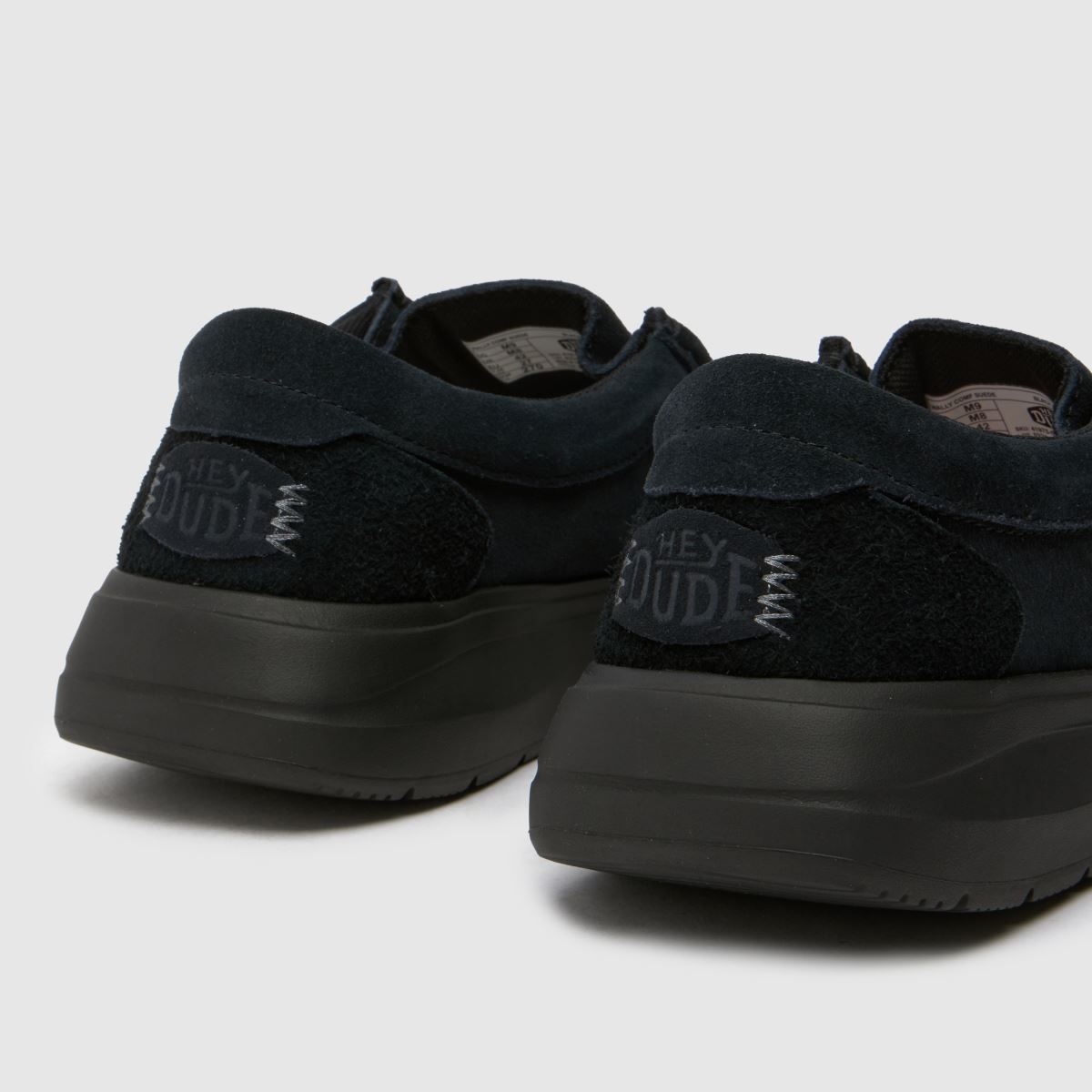 HEYDUDE introduce the black Wally Comf Suede shooes to schuh! These sleek black kicks feature a water resistant suede upper and a chunky black outsole. Elasticated laces and a removable insole complete this must-have HEY DUDE alternative trainer!