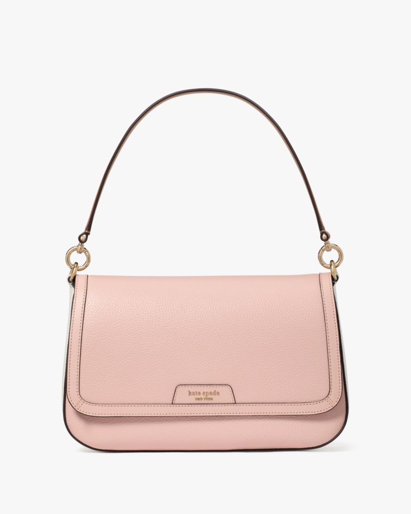 Designed for a classic flap silhouette in colorblocked pebbled leather, our Hudson bag is sure to become an everyday favorite. Kate Spade Women's HUDSON convertible shoulder bag in Rose Smoke/Pink Leather