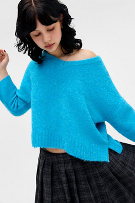 Cosy knit sweater with a high v-neck, crafted from a soft, fluffy fabrication. Features a relaxed silhouette, drop shoulders, long sleeves, and ribbed trims. Only at UO. **About Recycled Content** - We've used recycled content to help reduce the impacts of virgin resources on the environment, using third party certifications to verify our recycled fibres - Recycled materials are taken from waste and reprocessed into new fibres - Find out more about our UO In Progress initiatives [here](https://www.urbanoutfitters.com/en-gb/uo-in-progress) **Content + Care** - 72% Polyester, 16% Polyamide, 10% Wool, 2% Elastane - Machine wash **Size ...