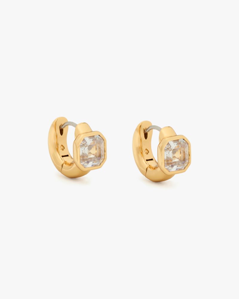 Everything's better with a little shine. Bling it on with our Asscher-cut huggies, made from cubic zirconia. Kate Spade Women's Keep Sparkling Asscher Huggies in Clear/Gold/Beige