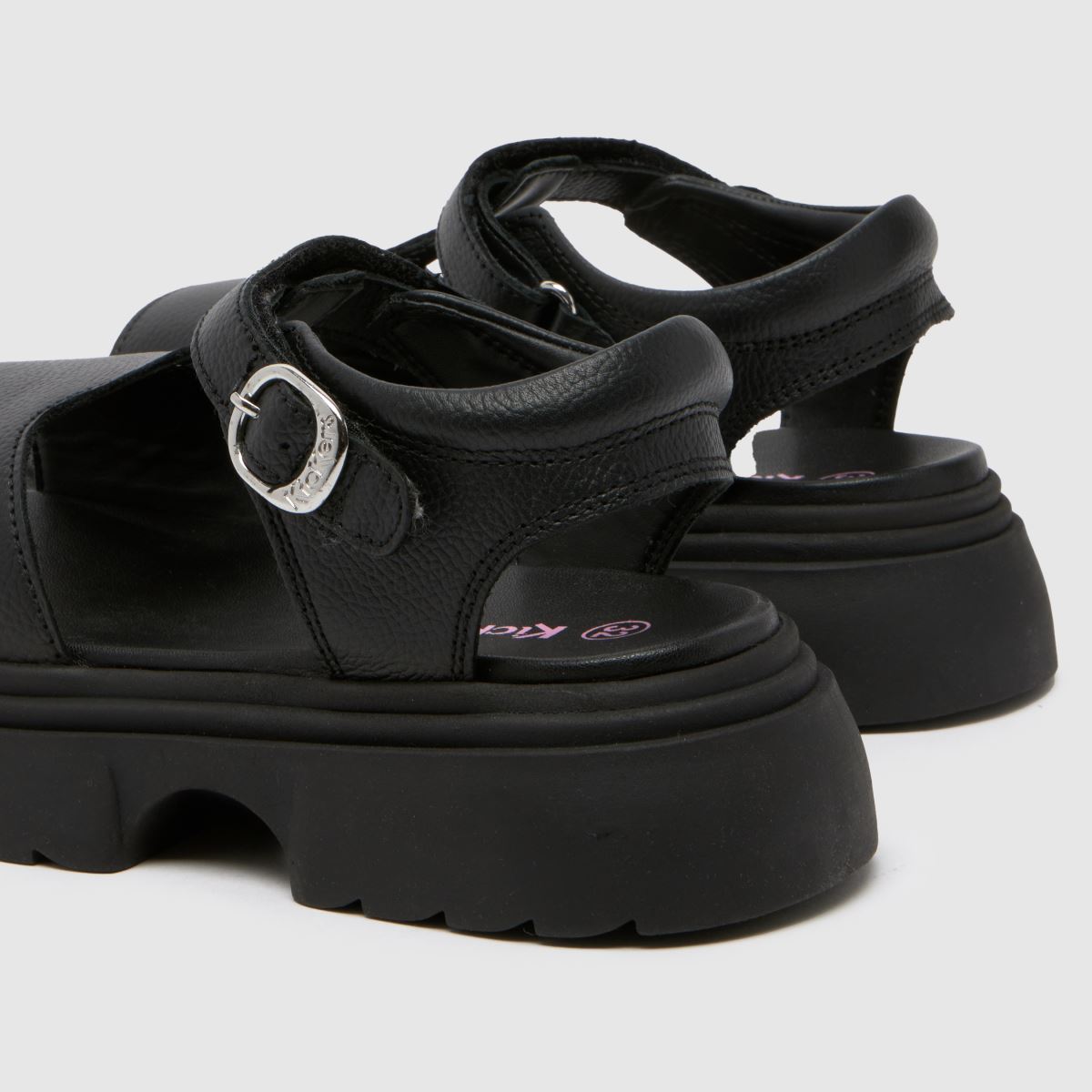 Kickers have the kids covered this summer with the black Kenzie junior sandal! Featuring soft leather uppers with an easy strap fastening and decorative floral buckle detailing. Finished with a comfy moulded footbed and chunky rubber sole.