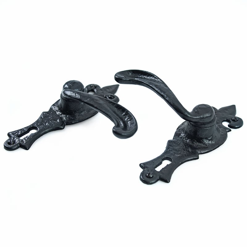 Order online our 2442 Fleur De Lys Curved door lever handles A pair of high quality, cast iron lever door handles. Available with either latch, lock or bathroom mechanism. Unsurpassable British quality, hand forged in a foundry in the West Midlands.