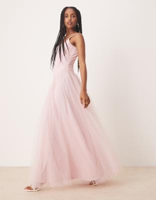 Lace & Beads drop waist corset detail maxi dress in powder pink