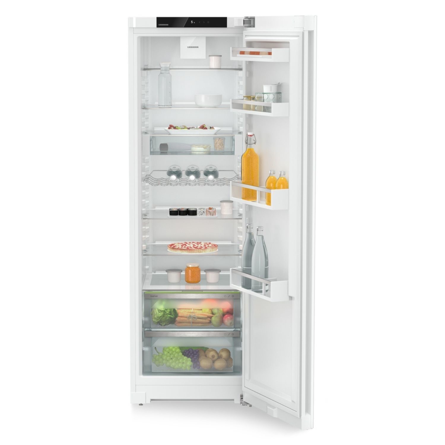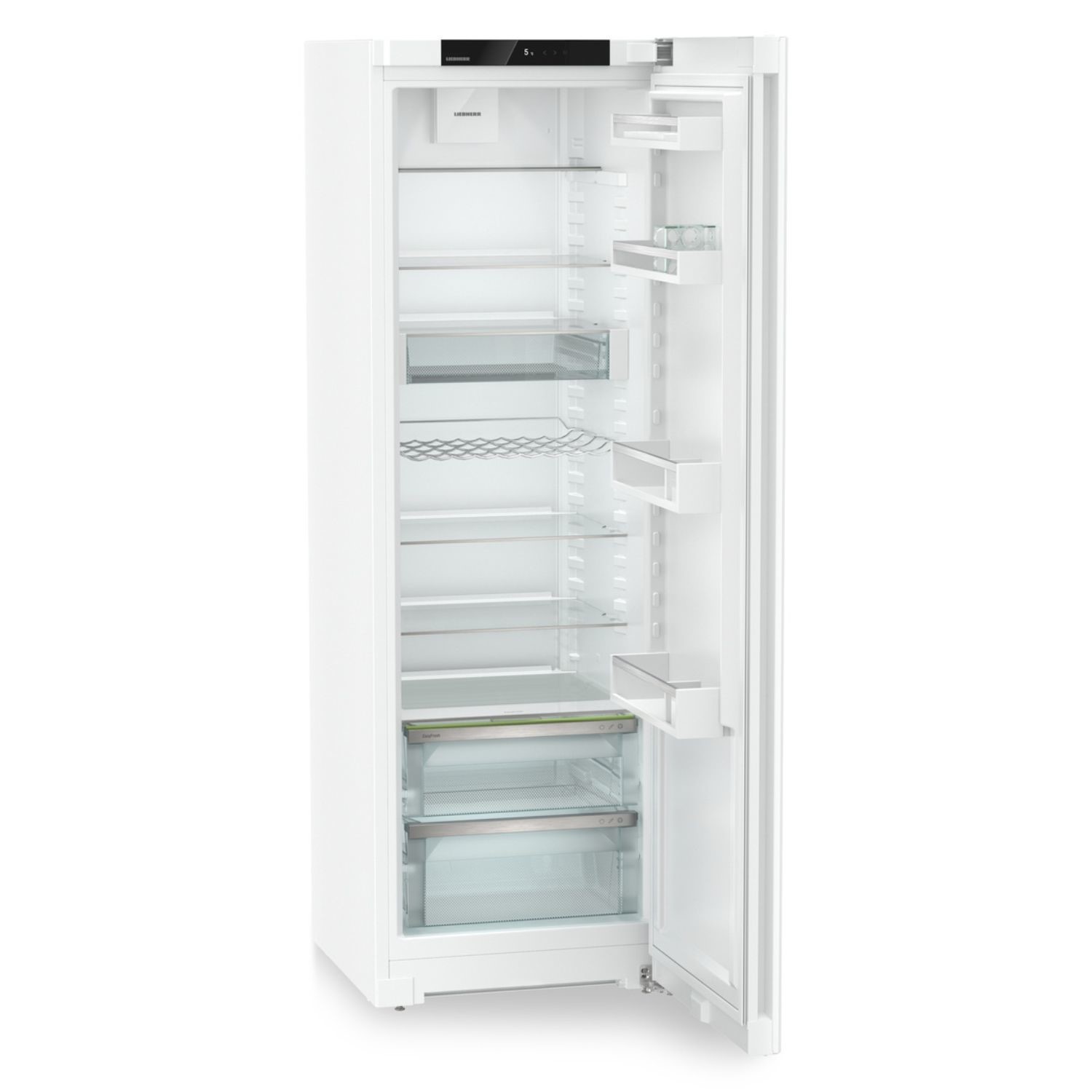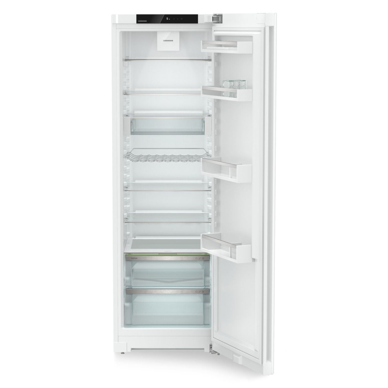 Key Features 399L fridge capacity can store up to 20 bags of food shopping . Easyfresh keeps food fresh for a long time . Keep cold distributed evenly as possible with PowerCooling with FreshAir Filter . All refrigeration components are optimised for a SuperSilent fridge . 7 Glassline Shelves for a clear organized and attractive interior . Recessed Grip Handle helps to open the appliance with ease EasyFreshThe guarantee of market freshness in the home is our EasyFresh-Safe. Whether it’s unpackaged vegetables or fruit this ensures optimal storage for everything. Thanks to the air-tight closure the food causes the humidity in the safe to rise. This keeps the food fresh for a long time. PowerCooling SystemDo you want to be sure that the cold is distributed as evenly as possible in your refrigerator? If so the PowerCooling system is what you need. The fan – as powerful as it is quiet – distributes the cold air efficiently throughout the entire refrigeration compartment. Touch displayFingertip control the touch display enables easy and intuitive operation of your Liebherr. All functions are clearly arranged on the display. By gently tapping a finger for example you can easily select the functions or check the current temperature of your refrigerator. Recessed gripSpecial and functional You can open the appliance very easily using the vertically integrated and ergonomically fitted handle. Additionally the modern and puristic design fits perfectly into your hands-free kitchen..