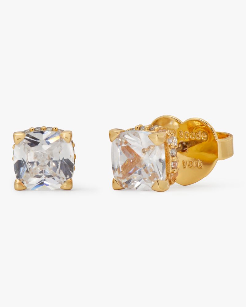 Always a classic, these square-cut studs are sparkling little extras you'll wear season after season. Kate Spade Women's Little Luxuries 6mm Square Stud Earring in Clear/Gold/Beige