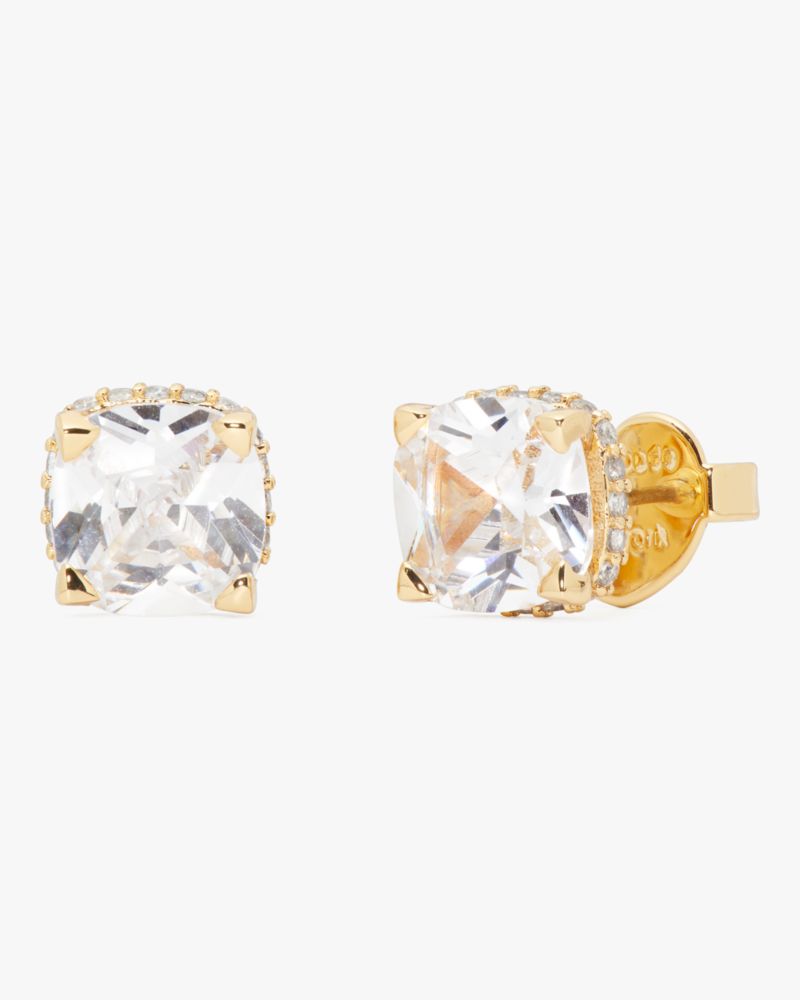 Always a classic, these square-cut studs are sparkling little extras you'll wear season after season. Kate Spade Women's Little Luxuries 8mm Square Stud Earring in Clear/Gold/Beige