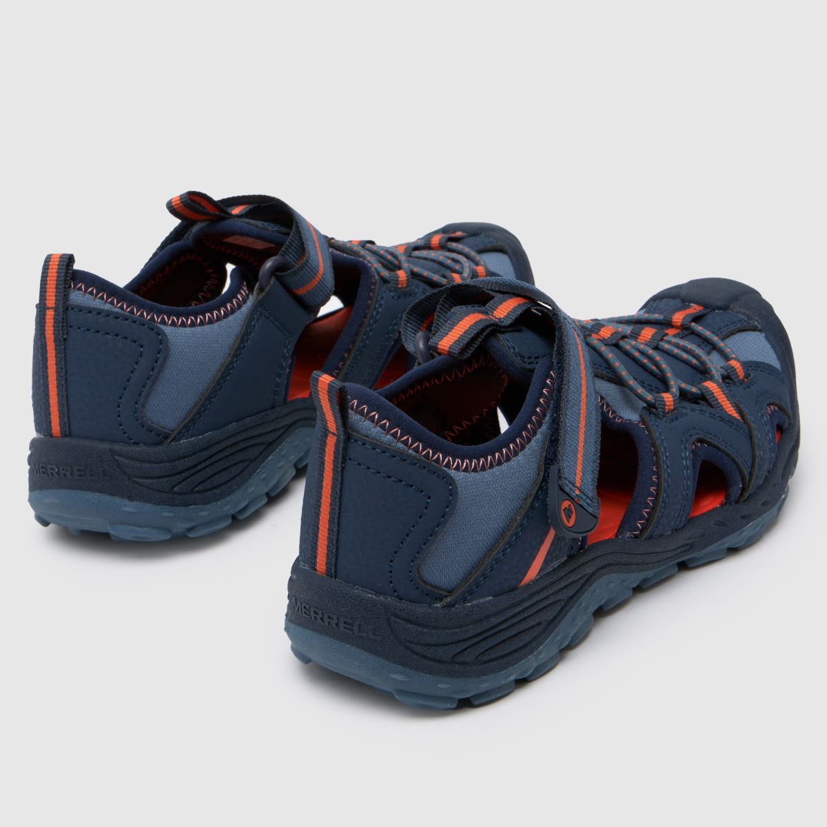 These Merrell Hydro 2 Sandals combine quick-drying comfort with protective closed-toe design. The navy and orange strappy uppers keep active kids safe and supported during summer adventures, perfect for water play and outdoor exploring.