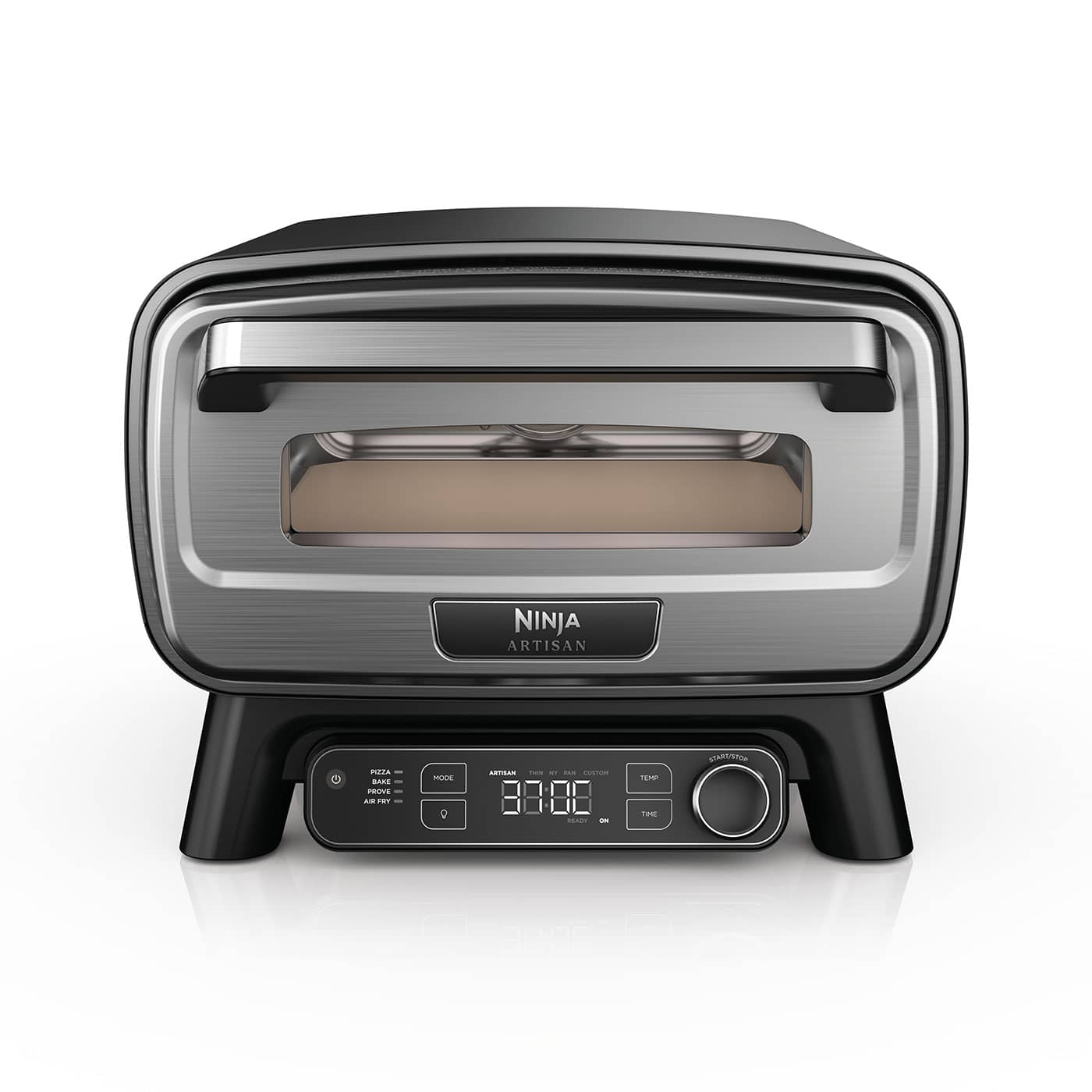 Introducing the outdoor pizza oven with no-turn pizzas in 3 minutes or less* and even baking at the push of a button. The 4-in-1 Ninja Artisan Electric Outdoor Pizza Oven & Air Fryer is the ultimate sidekick for all your outdoor entertainment with Pizza Bake Air Fry & Prove functions and a Pizza Peel to easily load and unload breads and pizzas from the oven. Artisan pizza in 3 minutes or less*: Make restaurant-quality 12 inch pizzas in 3 minutes or less* with even leoparding on crusts and gooey cheese - no turning necessary. Perfect for pizza parties make 3 back-to-back 12 inch pizzas in 10 minutes*. 5 pizza settings: Choose from 5 different settings to satisfy any craving; Artisan Thin Crust New York Pan and Custom. Artisan: Chewy puffy crust that's spotted with crispy bubbles. Thin Crust: Thin stretched pizza with a crispy crust. New York: Large foldable crust with light browning. Pan/Chicago: Thick chewy crusts baked in a deep dish or pan. Custom: Turn your favourite packaged pizza into a masterpiece. Full meals outdoors: Cook and warm your sides in your Ninja pizza oven at the same time your main is cooking - char burgers on your grill while baking focaccia or air frying chicken wings in your oven. No flame full control: Electric heat unlocks Complete Temperature Control with a wide range of temperatures up to 370°C and easy-to-use digital controls. Expand your horizons and cook more outdoors without the fuss of a live flame. Plus no messy wood-burning or gas flare-ups mean this pizza oven is balcony and patio friendly. Chef's View Window: Watch your creations come to life through the Chef's View Window on the door of the oven and turn on an interior light at the touch of a button to see food cooking. Feed a crowd: Fits a 12 inch pizza 12 inch/30cm baking tray 6 chicken breasts 1.3kg of chicken wings or French fries or a large sourdough loaf. Professional proving: The key to the perfect bread or pizza is making sure your dough is properly proved. Remove the guesswork with the Prove function - a 30°C setting that brings your dough to the optimal temperature for bakery quality results. Built to withstand the Great British weather: This electric pizza & bread oven is weather resistant so you can store outdoors. We recommend using our Ninja Artisan Oven Cover to keep your oven safe from the elements. What's included: Includes 12x12 Pizza Stone 30x30cm Bake Tray Perforated Pizza Peel Air Fry Basket and Quick Start Guide with recipes. *Not including pre-heat time; cooked at 370°C. For outdoor use only.