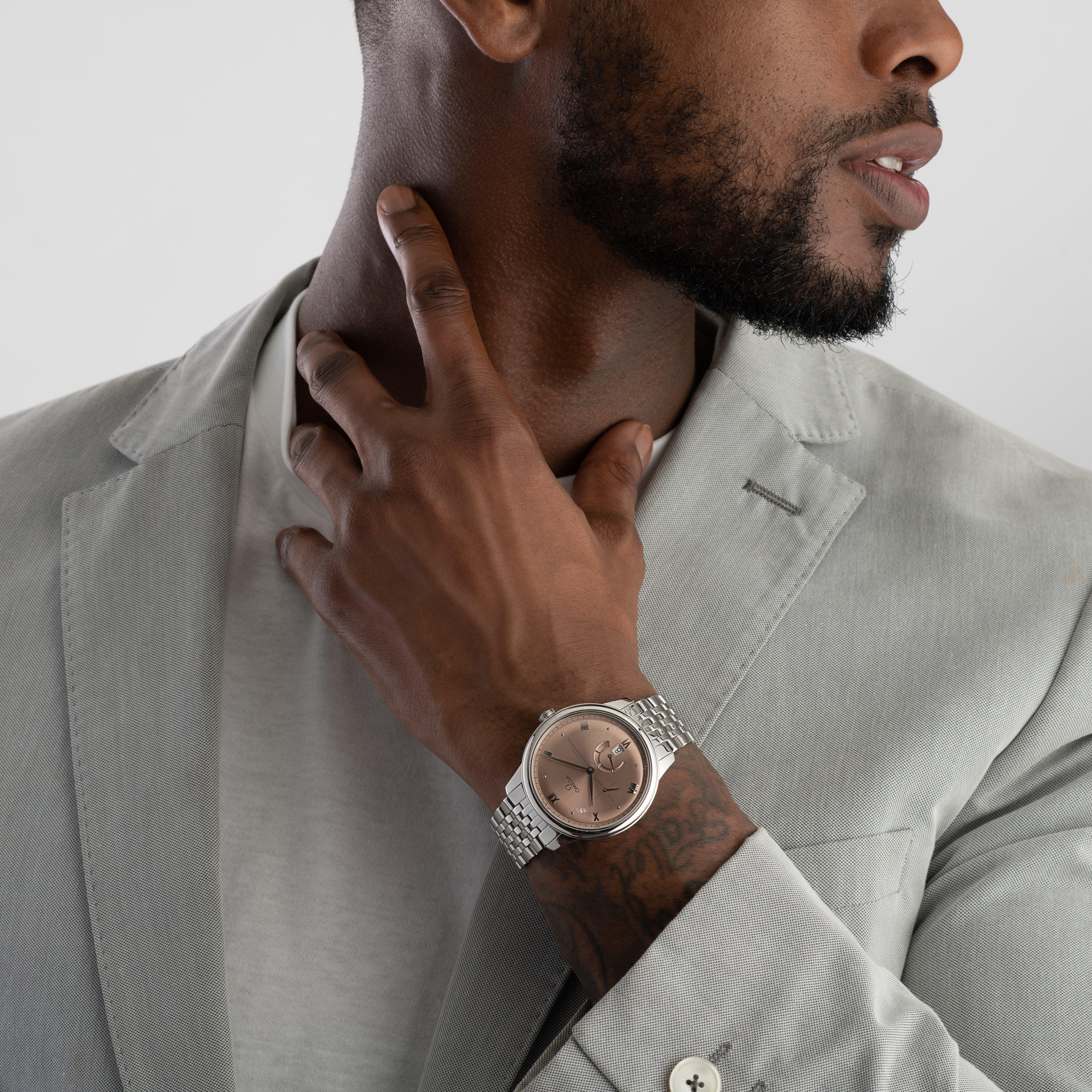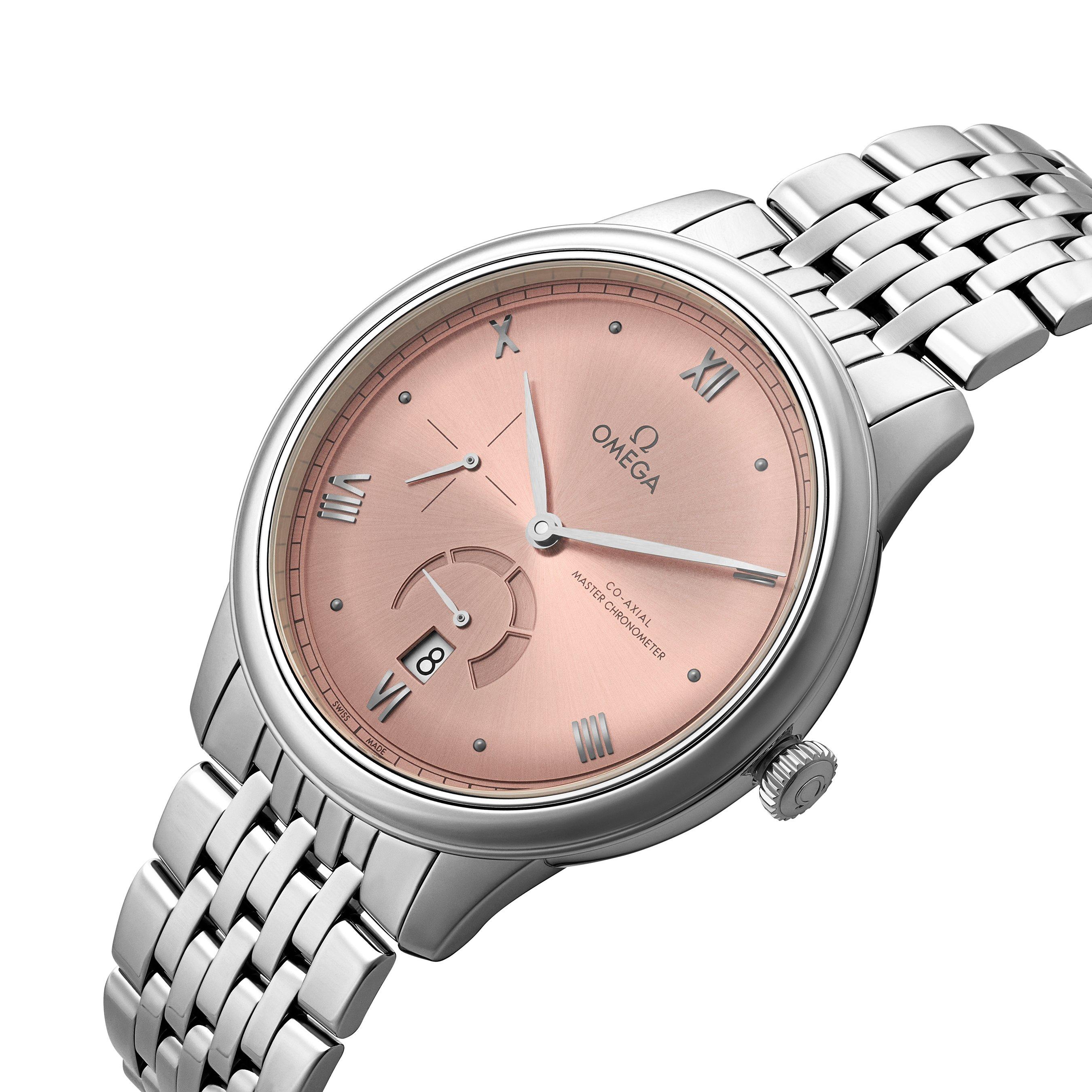 This Omega De Ville Stainless Steel Pink Men's Watch symbolises classical design and sophisticated style. Featuring a luxurious PVD salmon dial this timepiece was created to compliment any look. At A Glance Presented on a stainless steel bracelet fastened with a butterfly clasp 40mm bi-metal case with a 30m water resistance PVD salmon dial with PVD greyed hands and roman numeral hour markers Sapphire crystal glass Date window at 6 o'clock Powered by automatic movement
