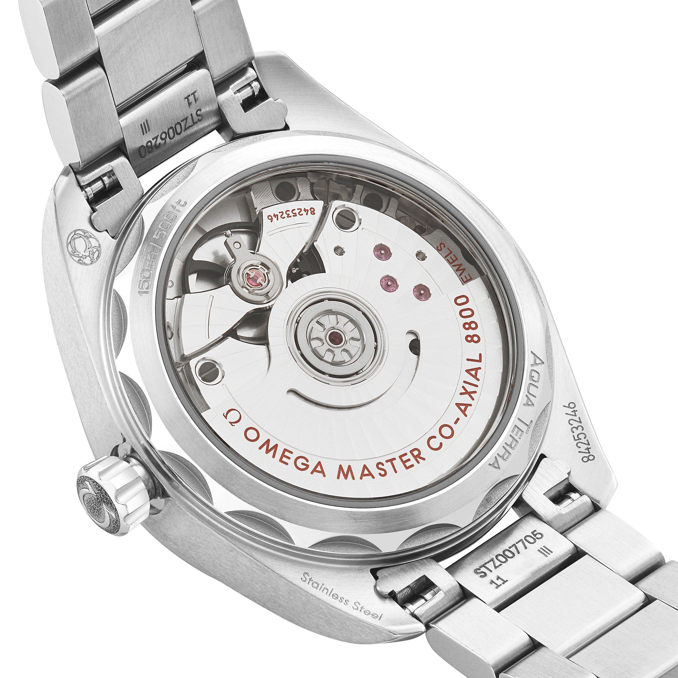 The perfect watch for those with a love of the ocean, this OMEGA Seamaster Aqua Terra Automatic Ladies Watch is a beautiful example of Swiss watchmaking excellence. The rose gold accents look great against the deep blue dial. At A Glance Fastened with a brushed and polished stainless steel bracelet 34mm stainless steel case with a polished bezel and 150m water resistance Scratch-resistant sapphire crystal Blue dial with wave design and baton hour markers Date window at 6 o'clock Powered by the OMEGA Co-Axial Calibre 8800 Master Chronometer self-winding automatic movement Minimum power reserve of 55 hours