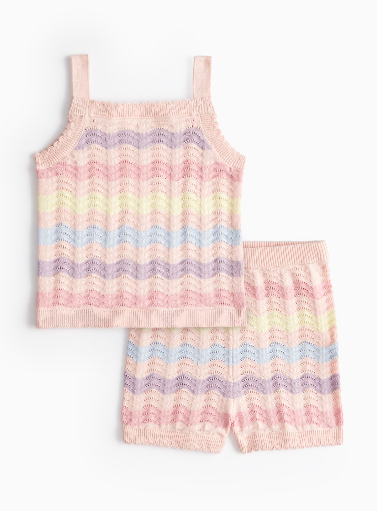 Pink Rainbow Stripe Knitted Top & Shorts Set – Tu by Sainsbury’s