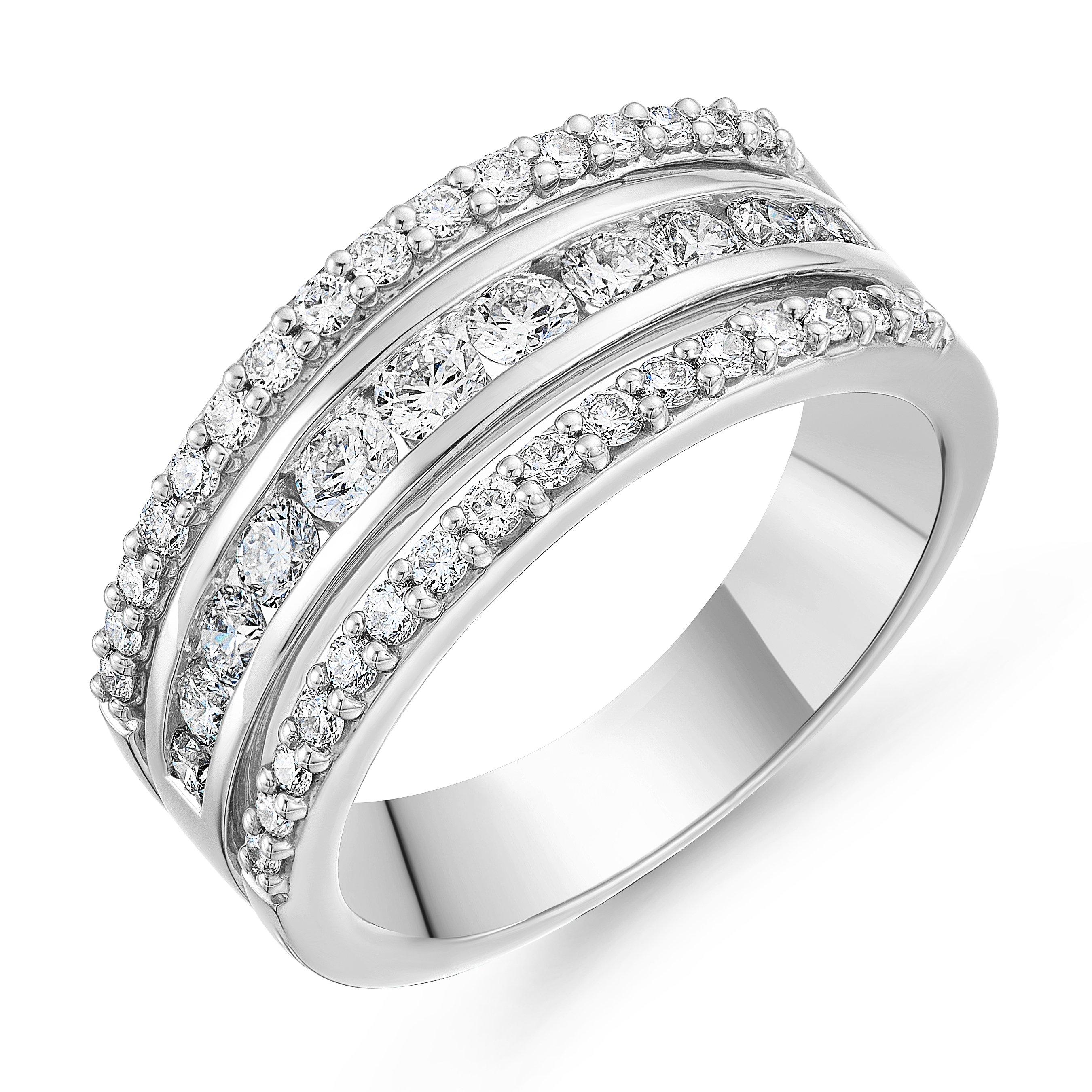 The definition of glamour and luxury, this Platinum Diamond Half Eternity Triple Row Ring is guaranteed to take your breath away for its incredible sparkle. At A Glance Designed with a luxurious platinum band Three rows of sparkling round brilliant diamonds Diamond cut - round brilliant Diamond colour - G Diamond clarity - SI1 Total diamond carat weight - 0.72ct Please note there could be a 5% variance on the diamond carat weight, as every diamond is unique