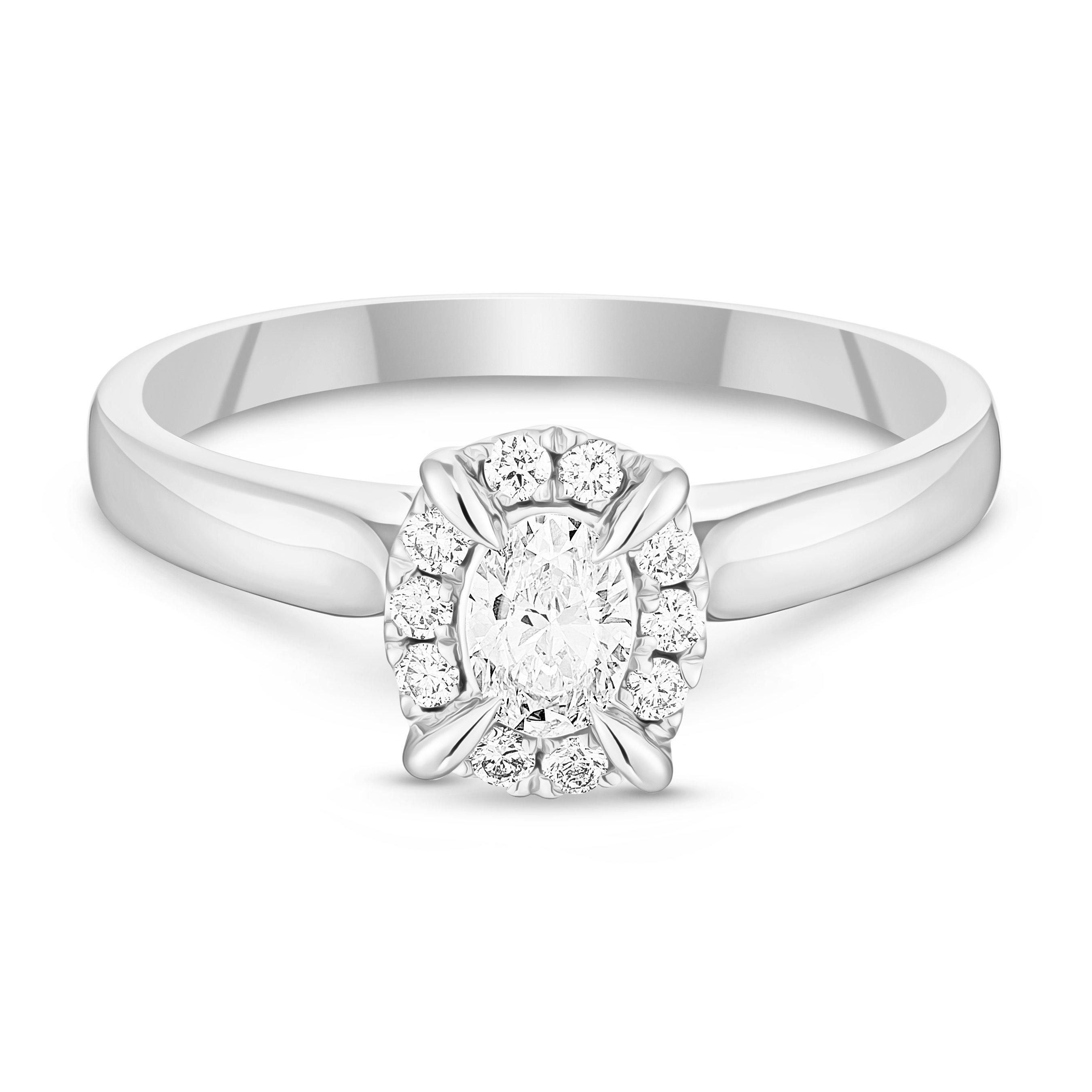 The epitome of timeless luxury, this Platinum Diamond Oval Shaped Engagement Ring captures the essence of your love in every sparkling facet. At A Glance Crafted in polished platinum Total diamond carat weight - 0.34 Diamond centre stone carat weight - 0.24 Diamond cut - oval, round brilliant Diamond clarity - SI1 Diamond colour - G Please note there may be a 5% variance on the diamond carat weight, as every diamond is unique