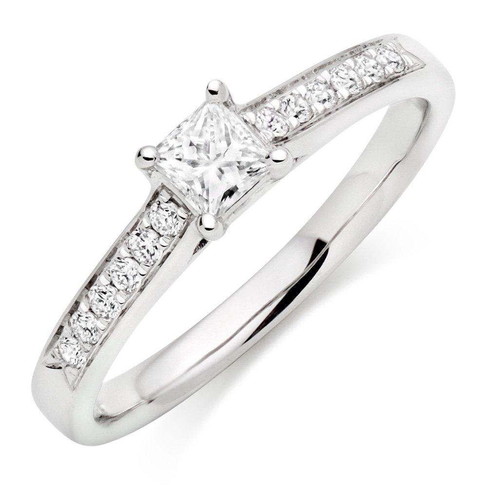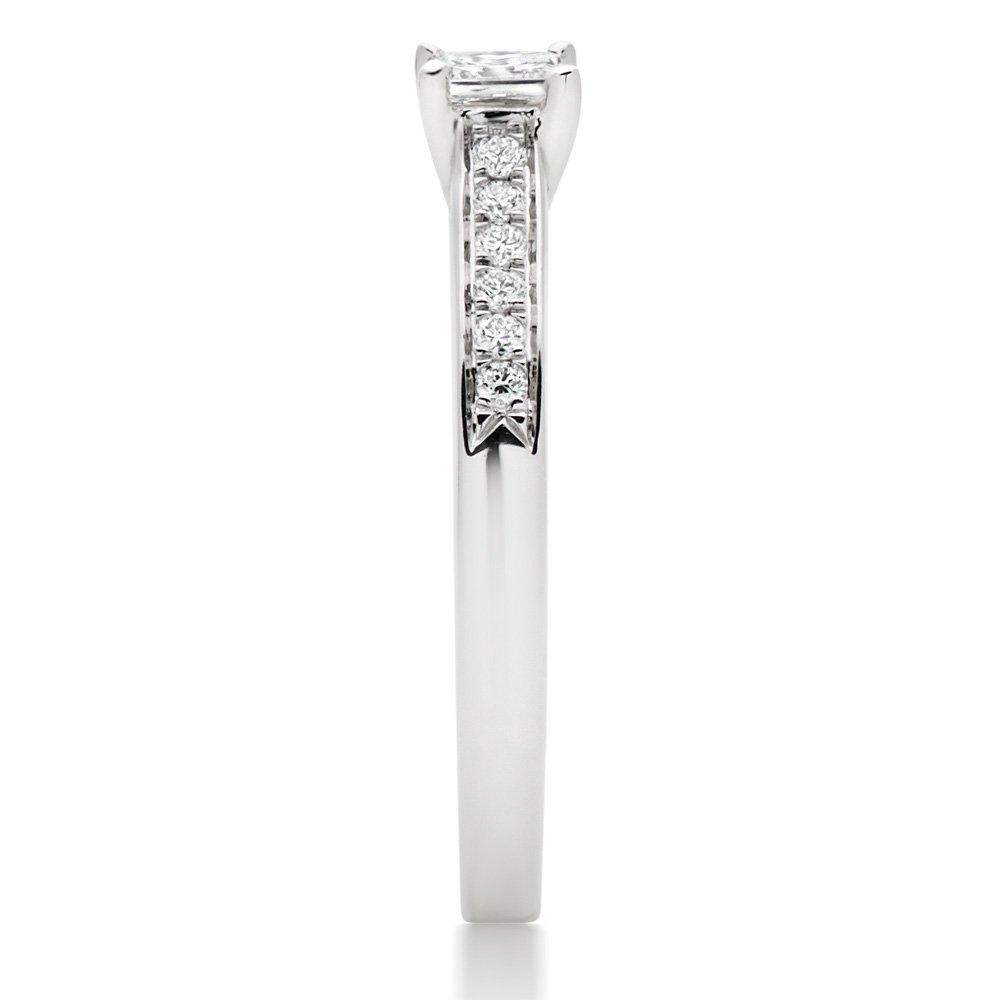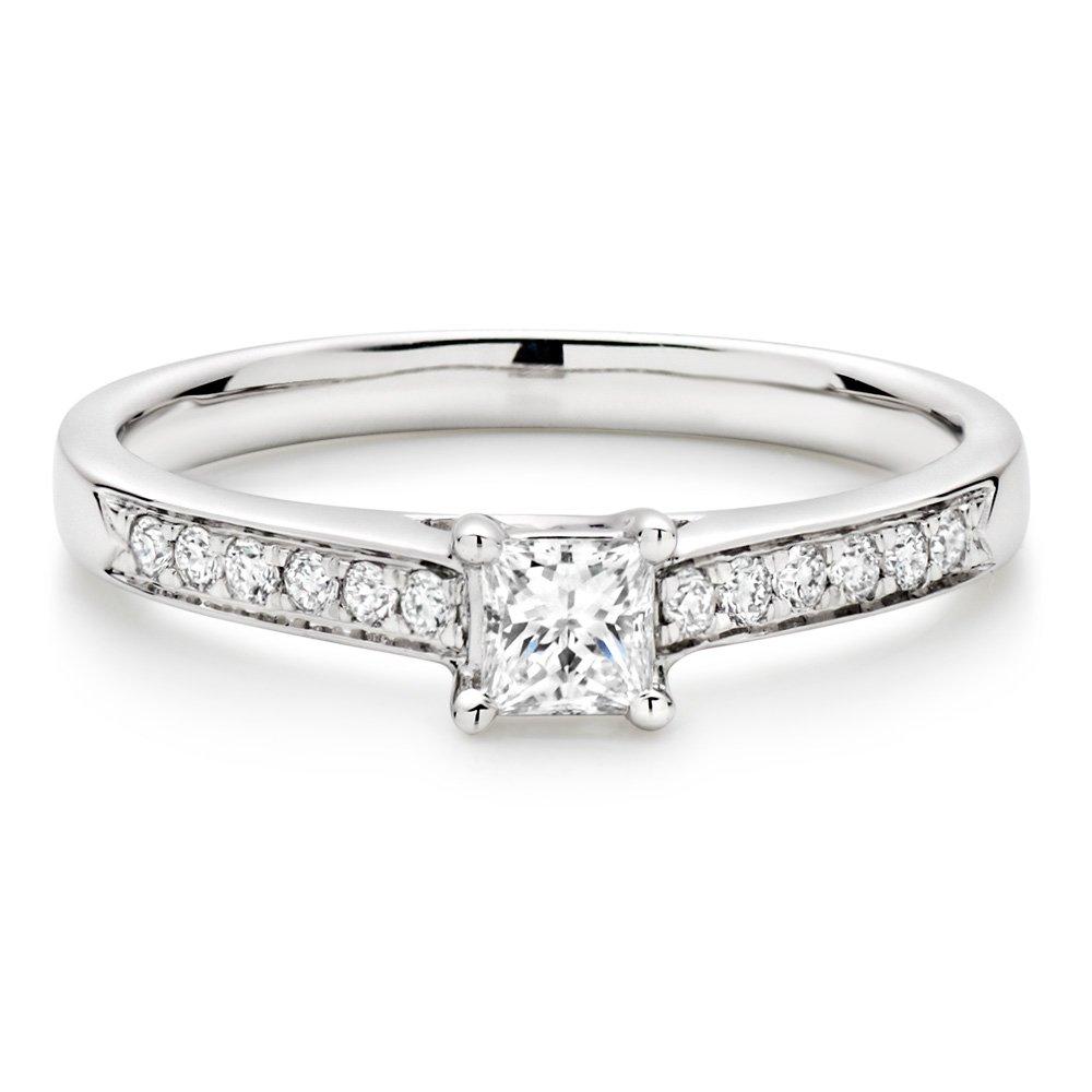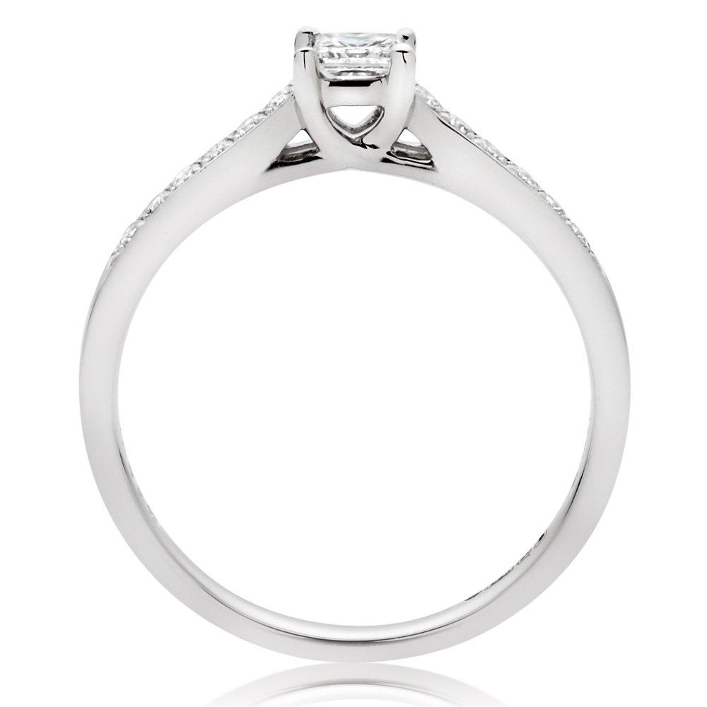 Effortlessly elegant, this stunning Platinum Diamond Princess Cut Solitaire Ring is a true gift from the very centre of the Earth. At A Glance Crafted in a polished platinum band Princess cut diamond Contemporary four claw setting Diamond set shoulders Diamond cut - princess, brilliant Diamond colour - G Diamond clarity - SI1 Diamond carat weight - 0.37ct Please note there could be a 5% variance on the diamond carat weight, as every diamond is unique