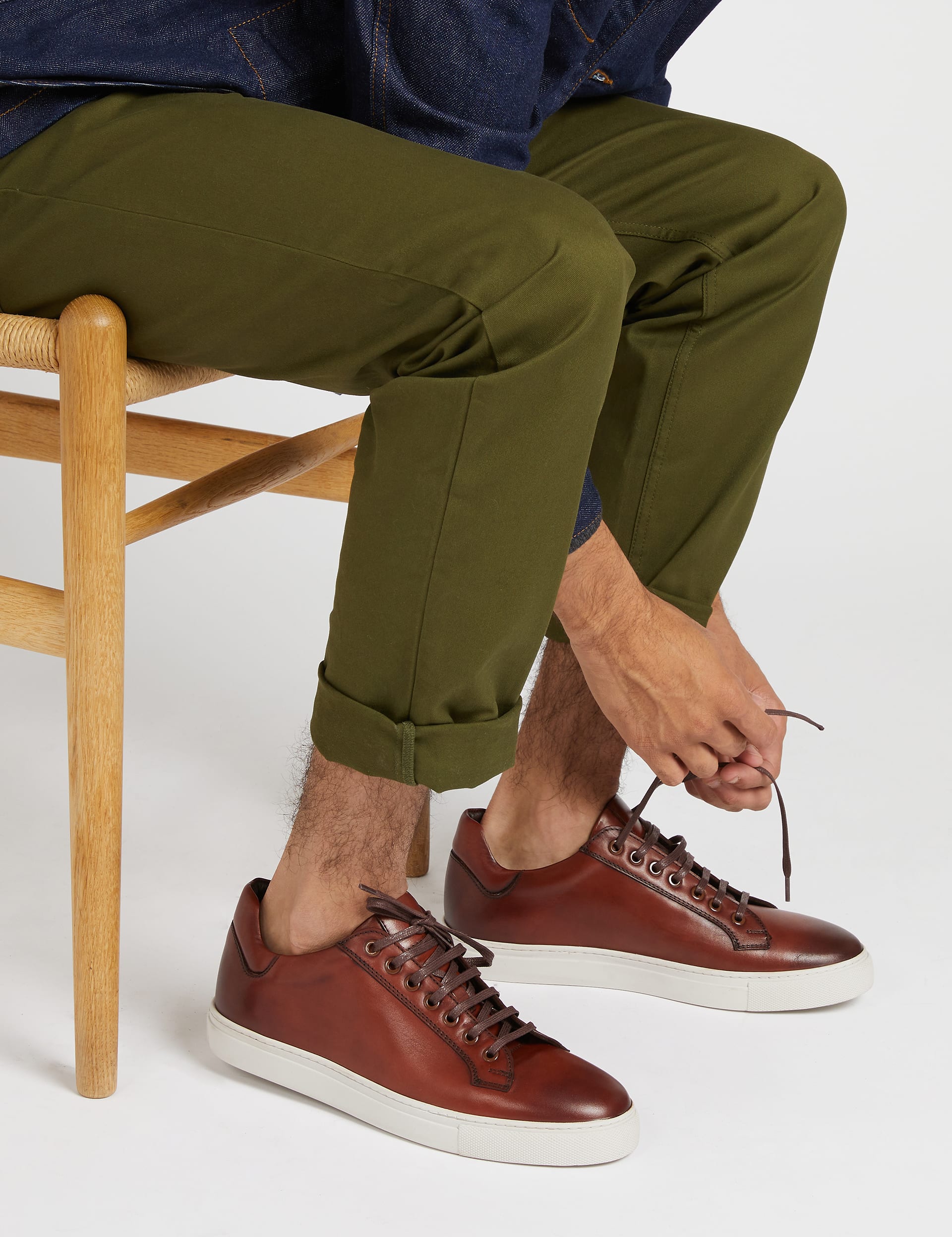 Jones Bootmaker Leather Lace-Up Trainers Cognac