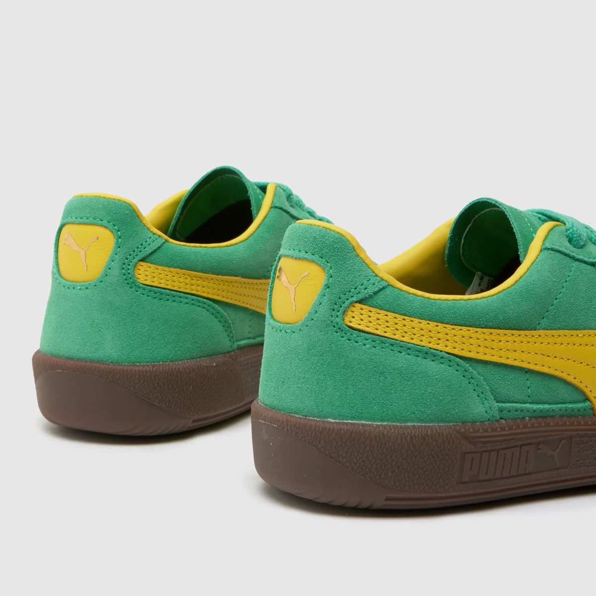 Elevate your trainer collection with the PUMA Palermo! Perfect for adding a pop of colour to your casual look with a green suede upper and yellow Formstrip branding. Finished with a gum rubber sole for a retro terrace vibe, what's not to love?
