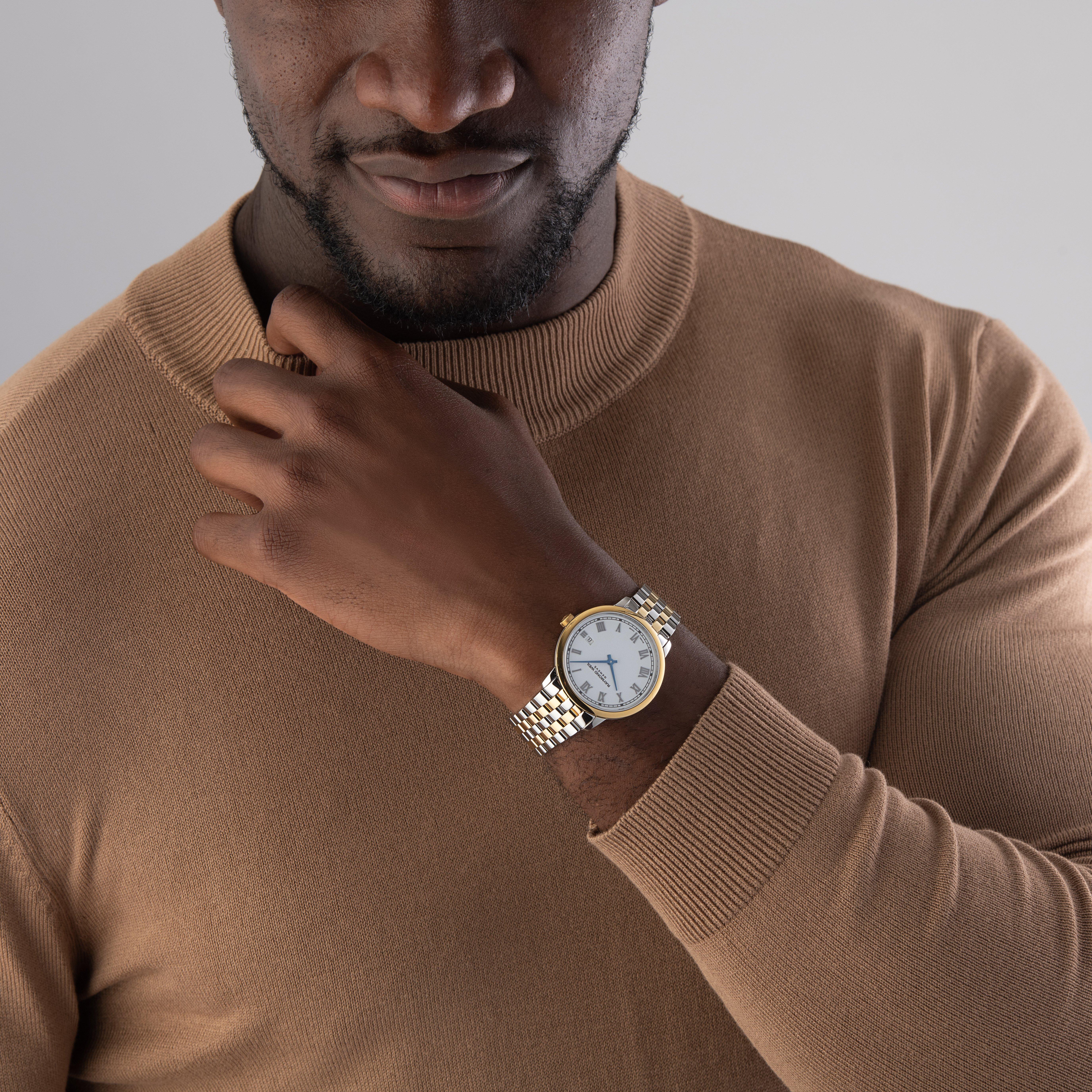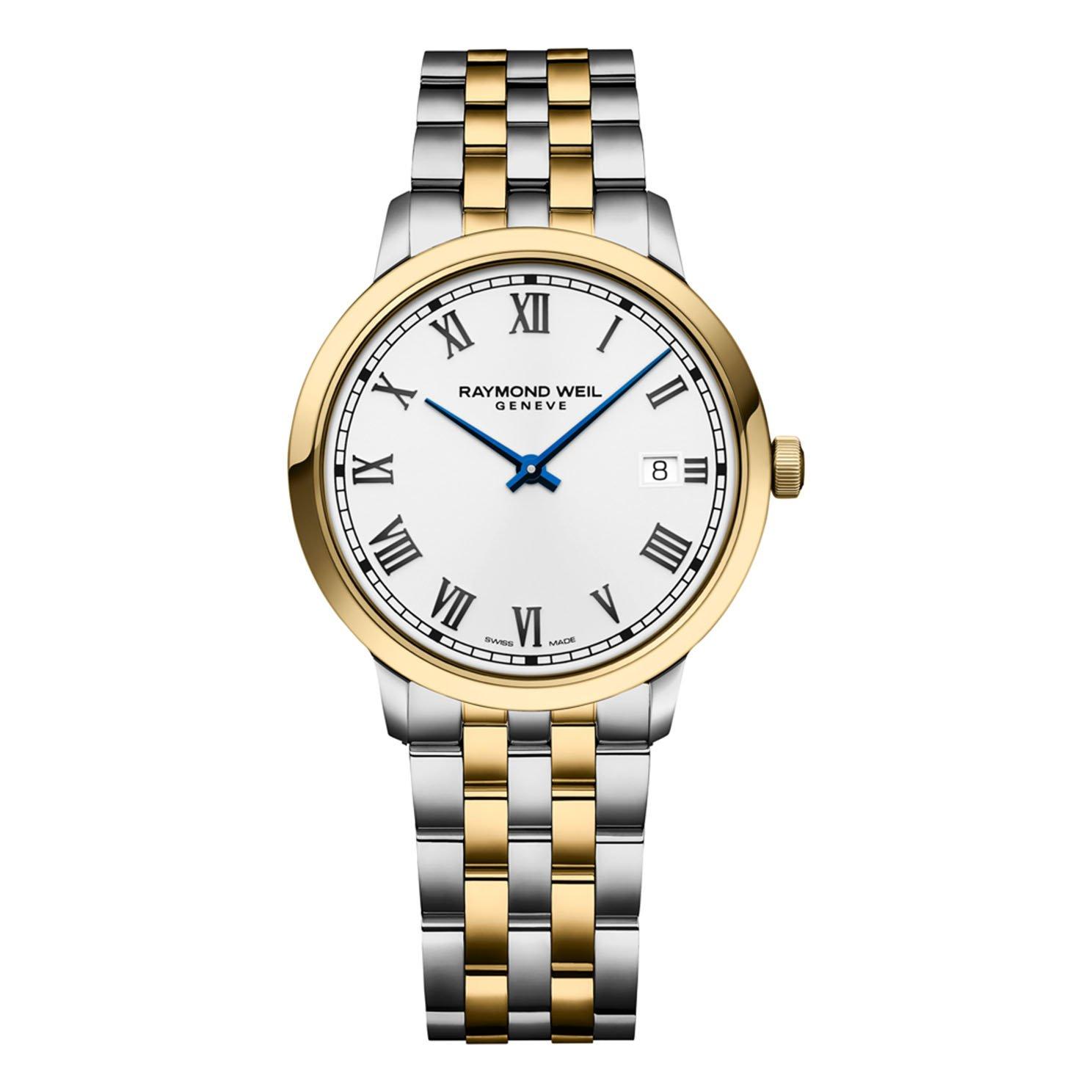 Showcasing a refined and timeless design, this Raymond Weil Toccata Stainless Steel Gold Plated Quartz Men's Watch is a celebration of the musical and artistic spirit behind the brand's DNA. Delivering a modern take on a traditional design, paired with excellent functionality this timepiece ensures accuracy and high performance. The perfect everyday companion. At A Glance Presented on a stainless steel and gold plated bracelet and finished with a foldover clasp 39mm case with 50m water resistance White dial with stainless steel hands and roman numeral hour markers Date window displayed at 3 o'clock Sapphire crystal glass Powered by a quartz movement