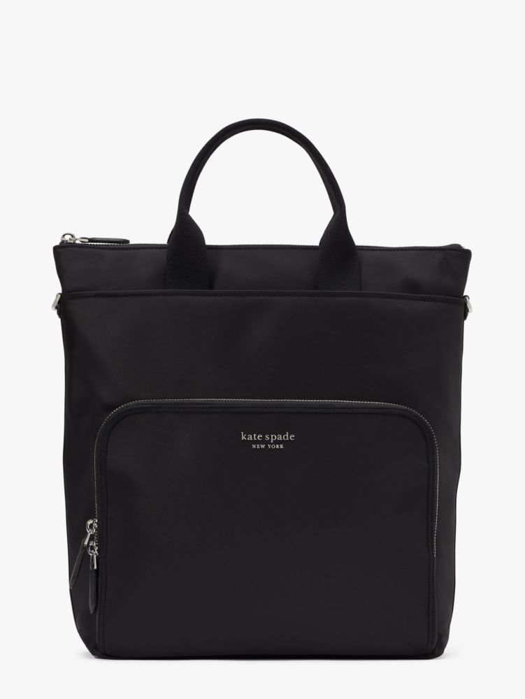 Backpack or tote? it's up to you. Carry around your laptop either way in this bag that easily converts with optional straps. This style has a 100% recycled nylon shell on the outside and 100% recycled polyester lining (and love) on the inside. Kate Spade Women's Sam Ksnyl Convertible Backpack in Black Recycled