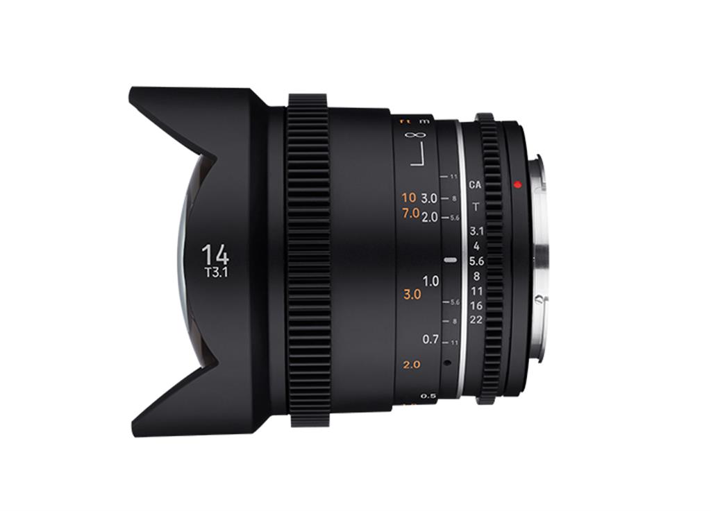 The VDSLR MK2 set comprises 5 of the most-used focal lengths: 14mm T3.1 24mm T1.5 35mm T1.5 50mm T1.5 and 85mm T1.5. As well as delivering the beloved image quality and fast T-stop values of the existing VDSLR series the new models now have weather sealing 9 aperture blades and their focal lengths are visible on both sides for more professional use. The range is highly versatile available in 6 camera mounts.
