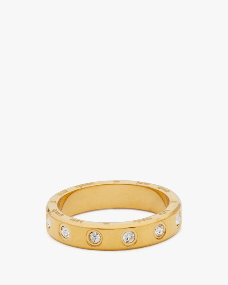 It's always a good time to add a little shine. Part of our signature Set In Stone collection, this stackable ring is adorned with sparkling crystals. Kate Spade Women's Set In Stone Ring in Clear/Gold, Size 8