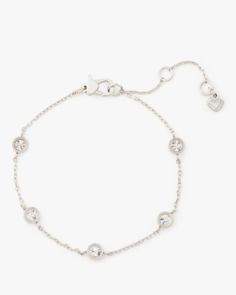 It's always a good time to add a little shine. Part of our signature Set In Stone collection, this station bracelet is adorned with sparkling crystals. Kate Spade Women's Set In Stone Station Bracelet in Clear/Silver/Beige