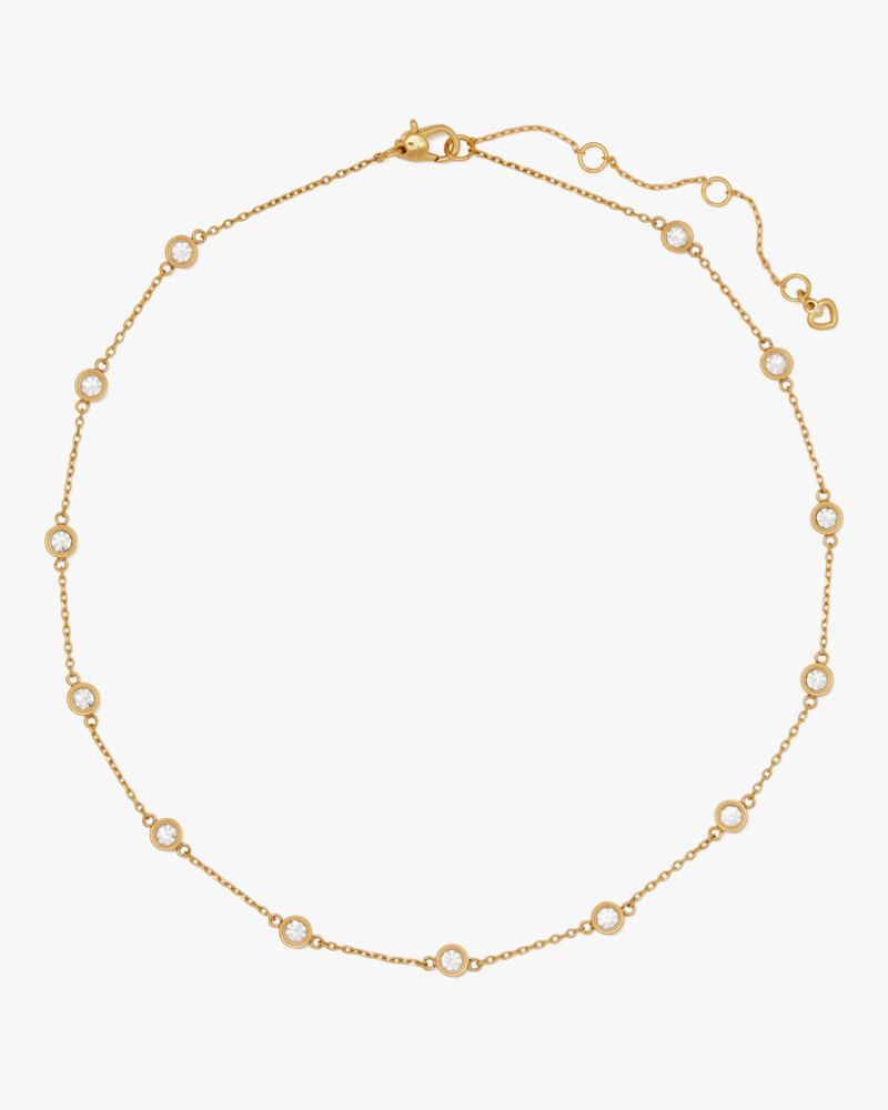 It's always a good time to add a little shine. Part of our signature Set In Stone collection, this station necklace is adorned with sparklingcrystals. Kate Spade Women's Set In Stone Station Necklace in Clear/Gold/Beige