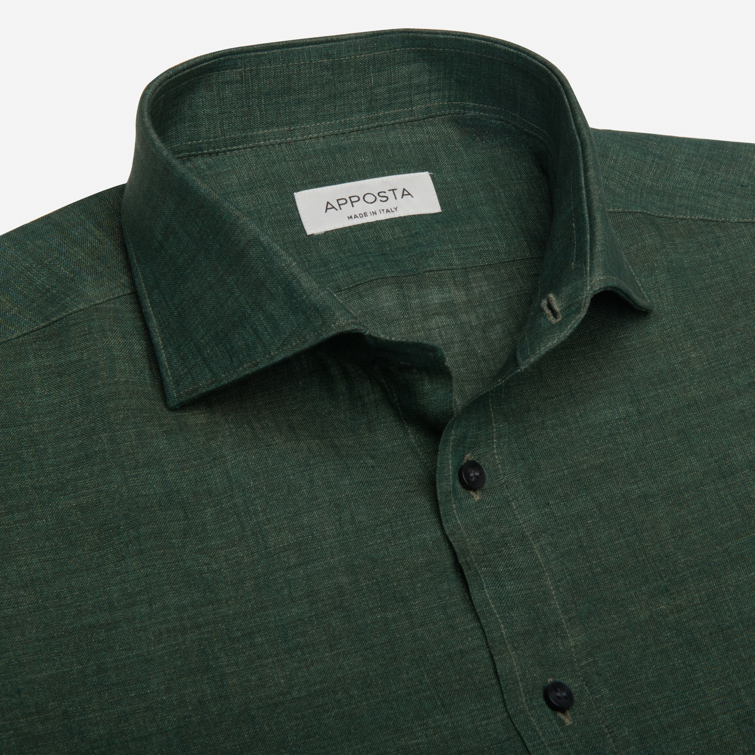 Shirt solid green linen plain normandy linen, collar style updated spread collar with short points