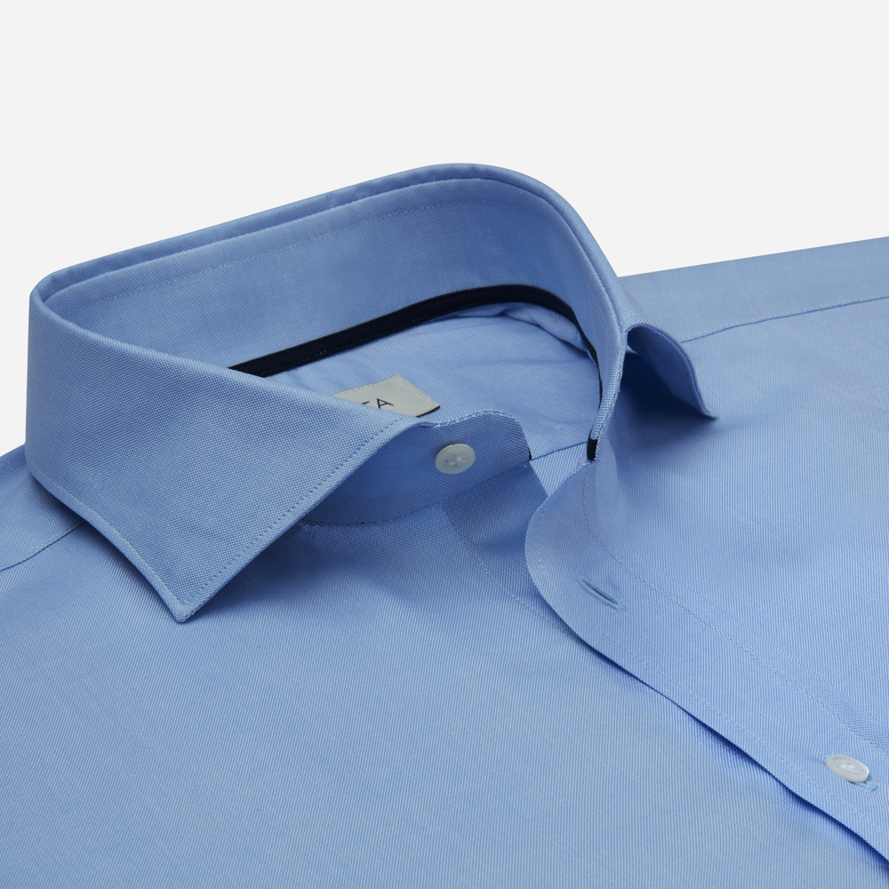 Shirt solid light blue cotton oxford, collar style lower spread collar